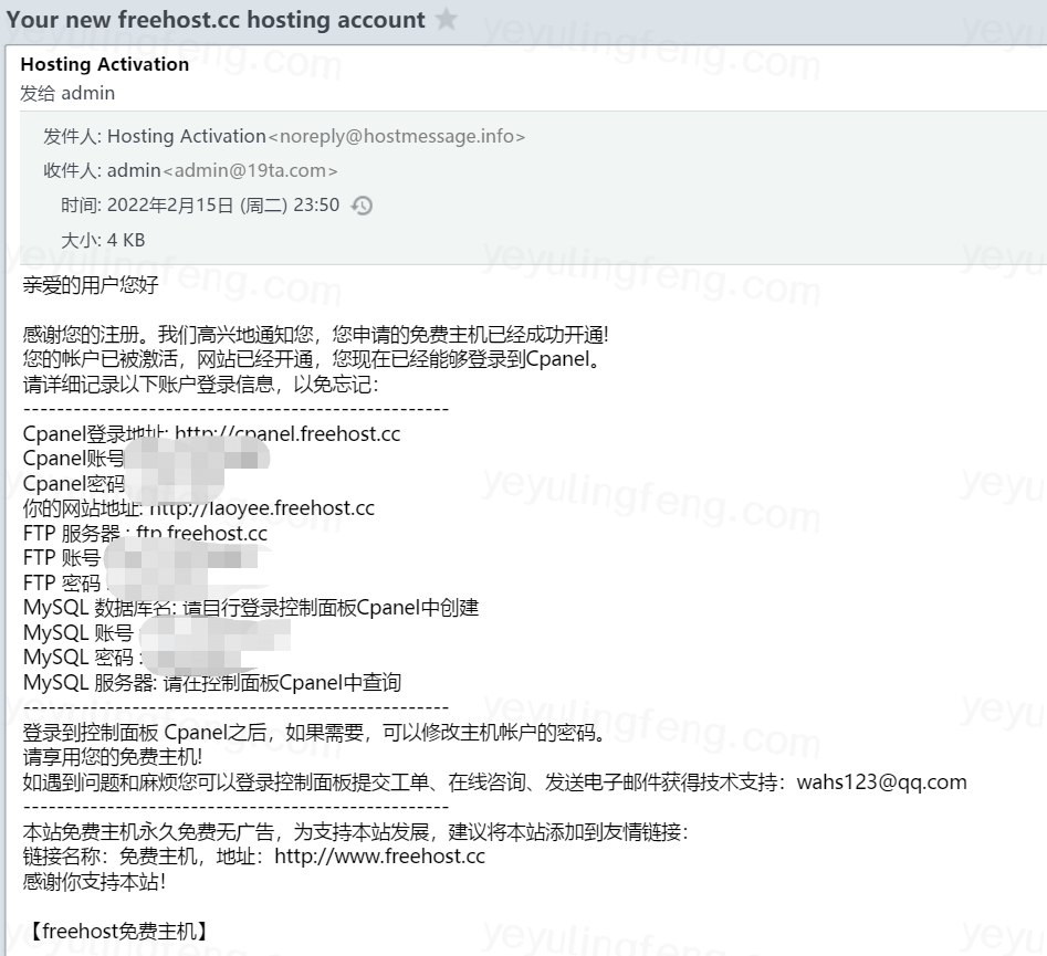 点击邮件中的激活链接,然后转啊转啊,待激活成功后就会将主机面板地址、FTP、数据库帐号密码都一并发过来,注意密码不要外泄