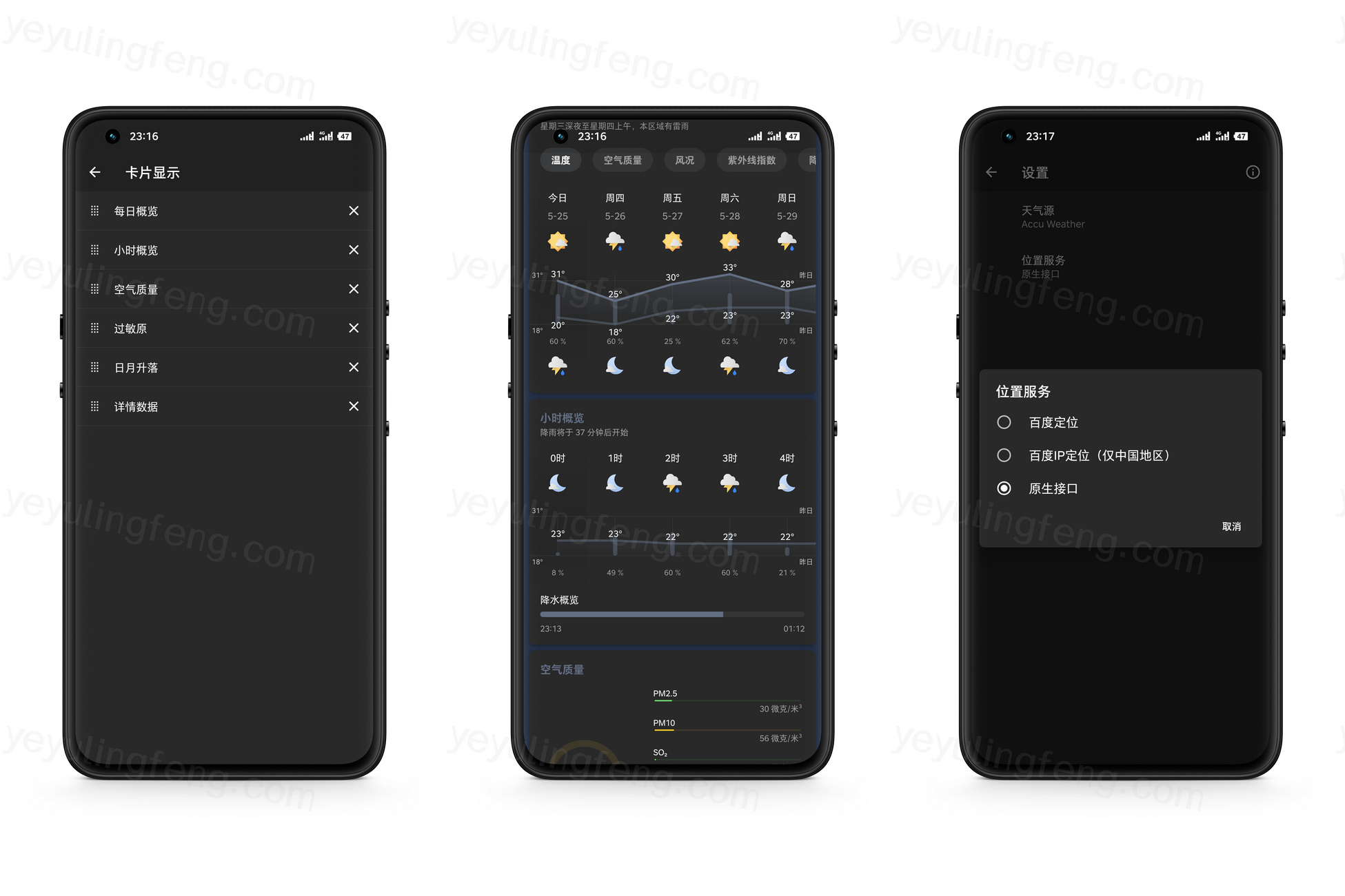 然后设置天气源以及位置定位为国内的服务就会快很多了