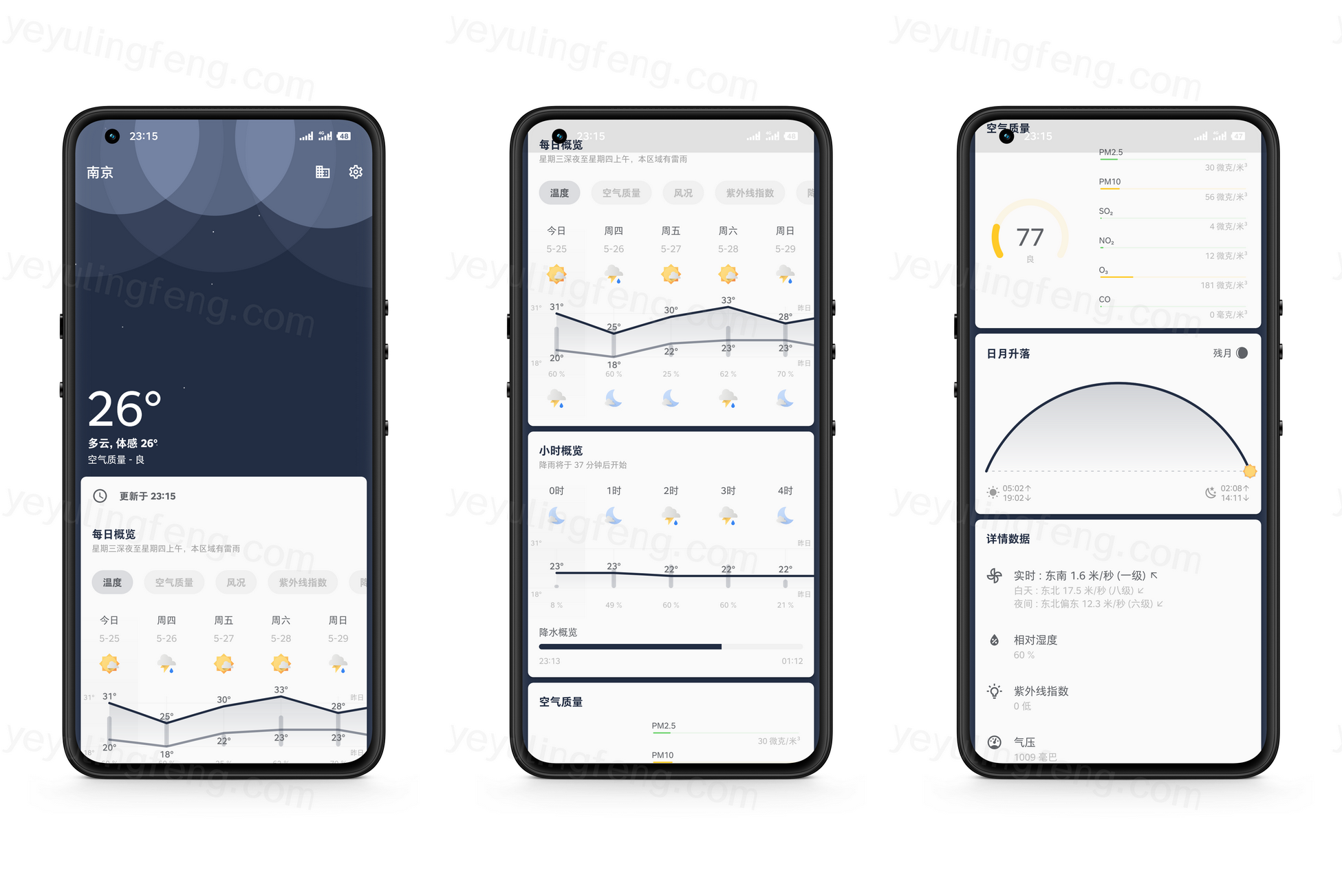 支持全球所有城市,部分地区可精确至街道,数据源有Accu、中国天气网、彩云天气