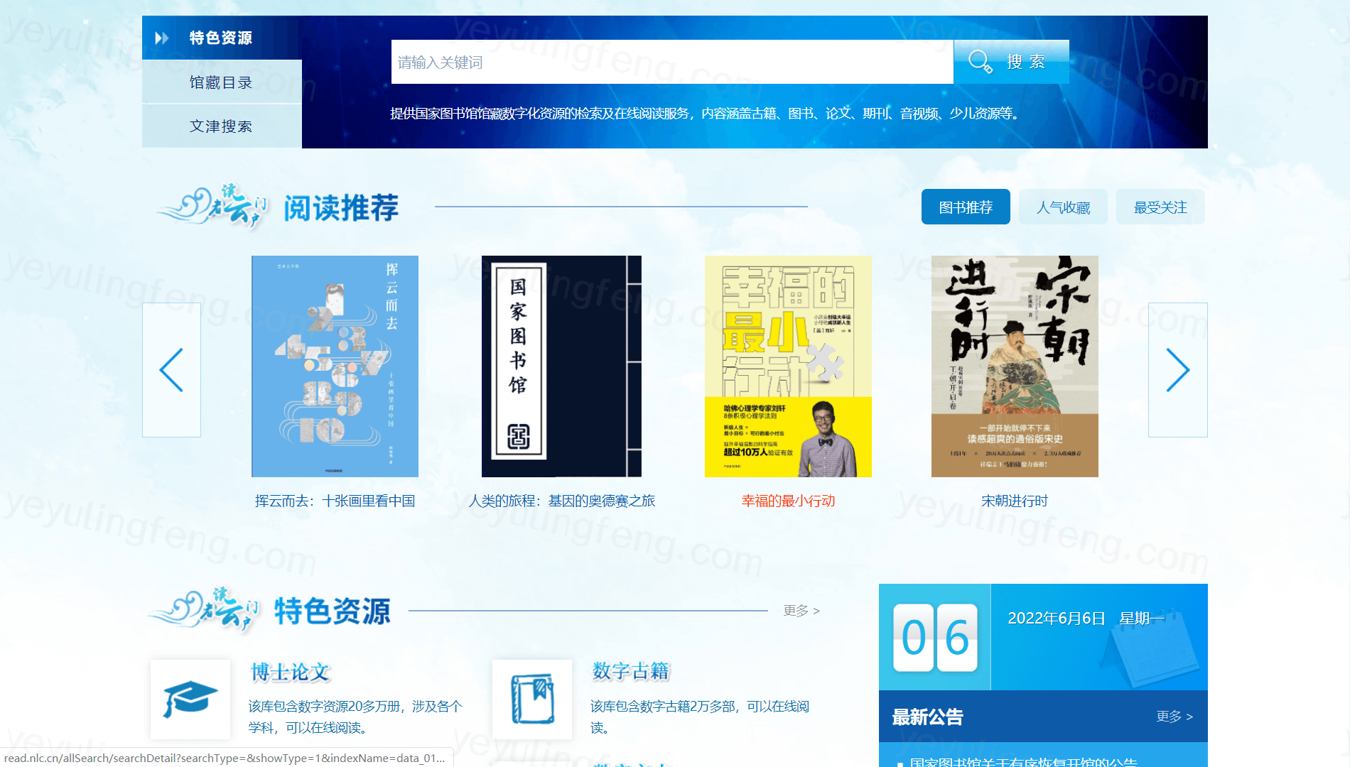 国家数字图书馆可在线阅读6万余册中文图书,460余种大众期刊,千余种有声、视频、公开课资源及多种数据库资源,并有着强大的检索功能能够检索国家图书馆纸质图书的馆藏信息,无论是手机还是电脑都完美支持,随时随地都能打开寻找需要的内容!内容都是免费,且都是精品!