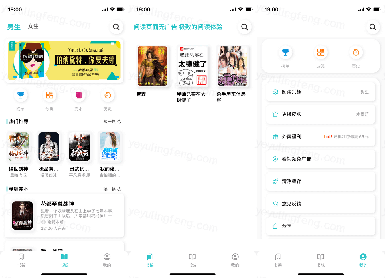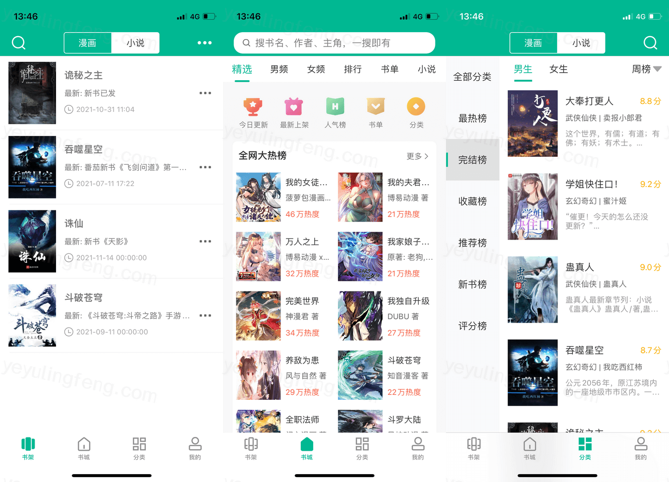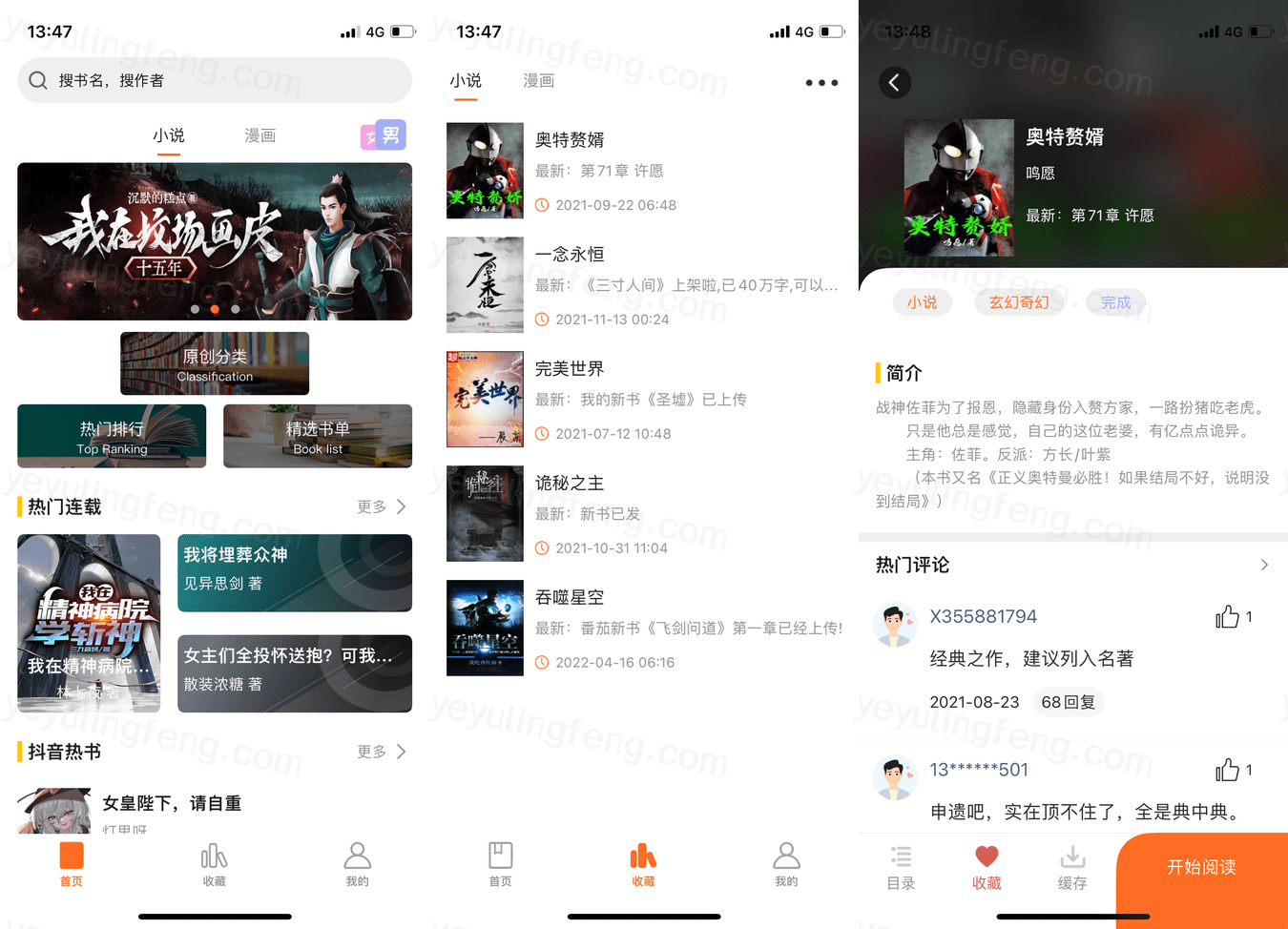 这款广告应该是最少的一个了,貌似是个新上架的应用,除了支持小说还支持漫画,像书城分类专区这类的就不专门介绍了,各家体验都差不多