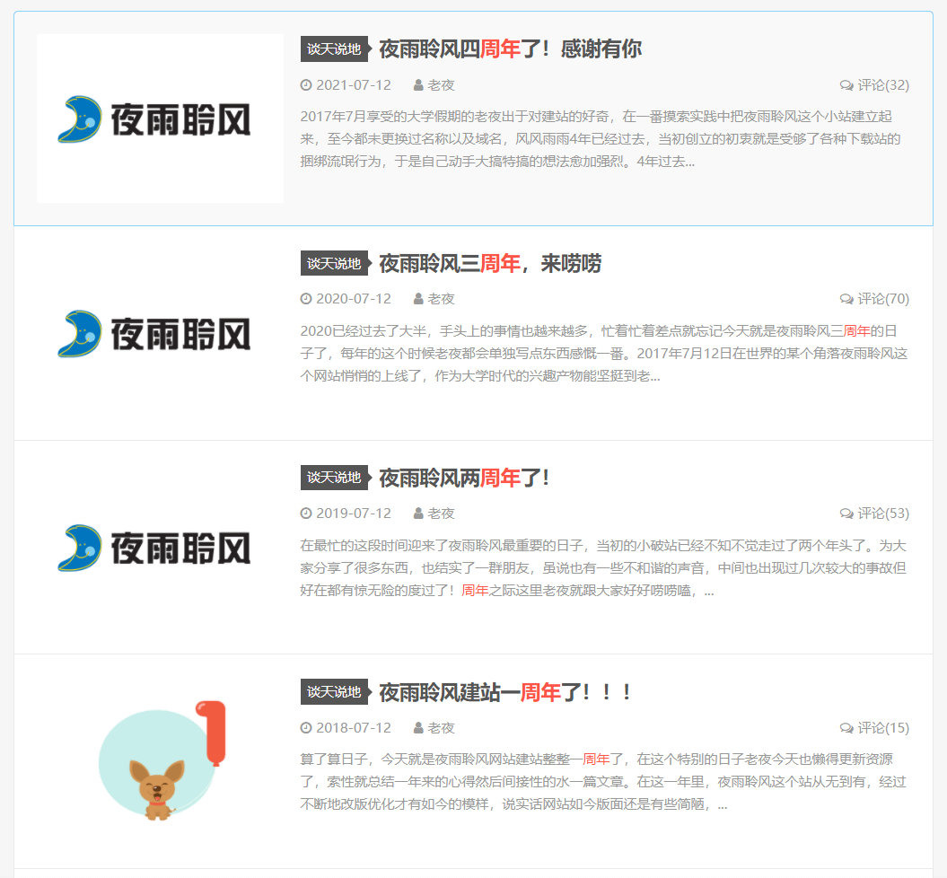 回顾5年前与现在,网站也一直在慢慢的探索一些新的方向,内容也有了很大的转型,老粉丝应该都看得出来,分享的东西基本上是越来越正规了,文章也尽可能的图文并茂,一切都在往好的方向发展,当然了除了一路下跌的访问量以及阅读量。大家可能更喜欢的是白嫖,但是版权意识的重视后面会越来越难做,为了长久考虑一些东西还是该砍就砍的。夜雨聆风在某一段时期也曾有过辉煌,至少互联网中还能找到当年的一丝痕迹,如今网站也跟老夜如今的心态一样彻底摆烂了,没有了当年那股冲劲只求安稳,夜雨聆风就如同一个5岁的孩子一般费劲了心血培养,不求多么夺目璀璨也不想被更多人认可只要健康长大就好,毕竟下一年下下年老夜还要继续在7月12这个日子跟大家闲聊