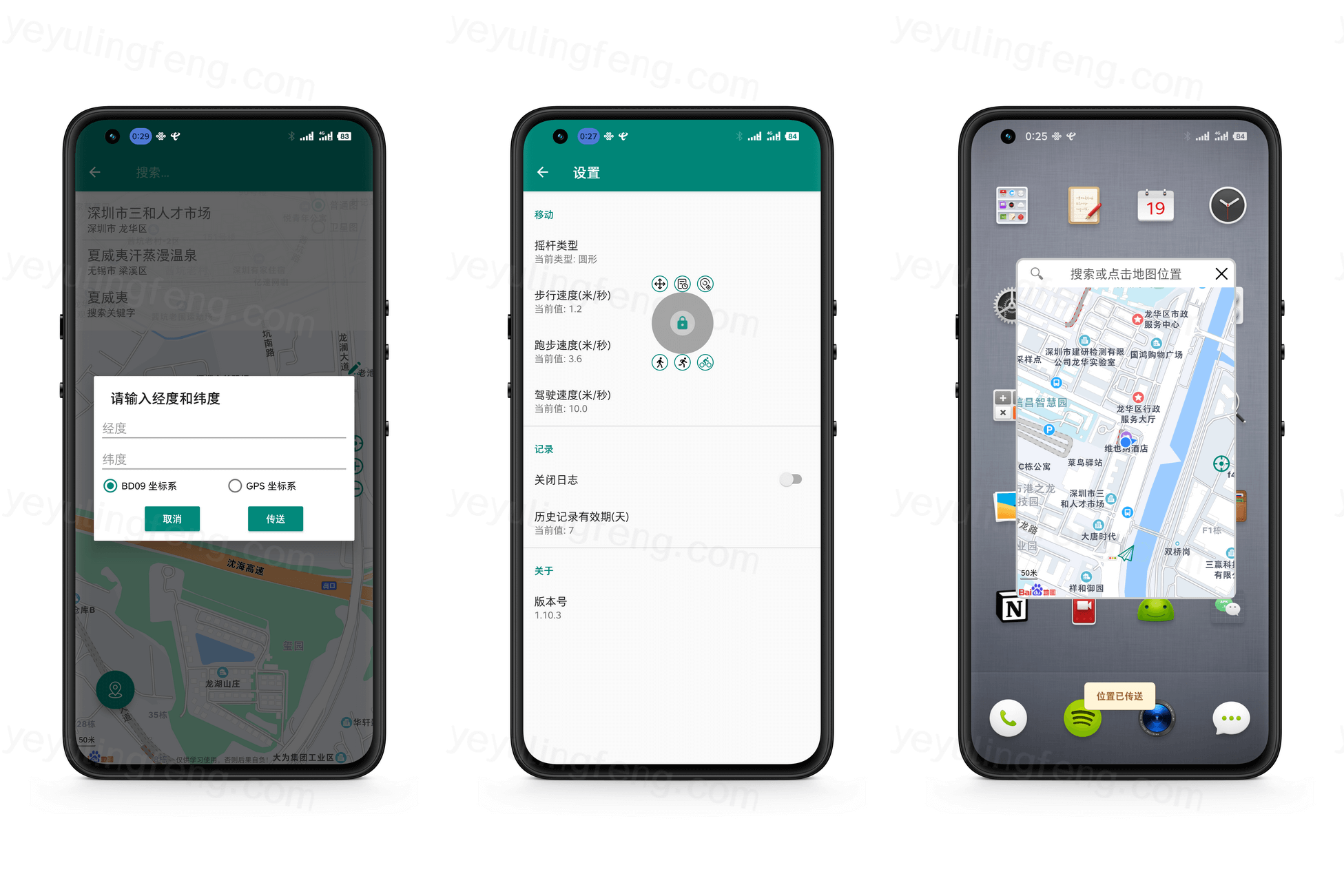 这是一款基于安卓调试API和百度地图的定位修改工具,可以模拟世界各地的任何位置,支持传统普通地图以及卫星实景图