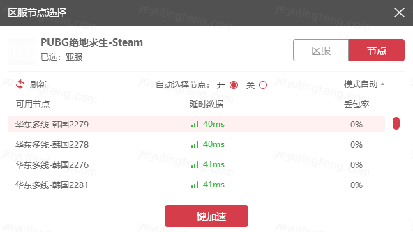 随便找个游戏试试,点击选择区服后,进入节点线路选择