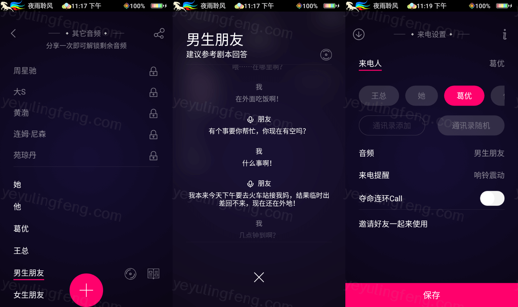 至于来电人显示可以自定义也能直接导入通讯录中的朋友,老夜这里直接使用的是软件自带的一些