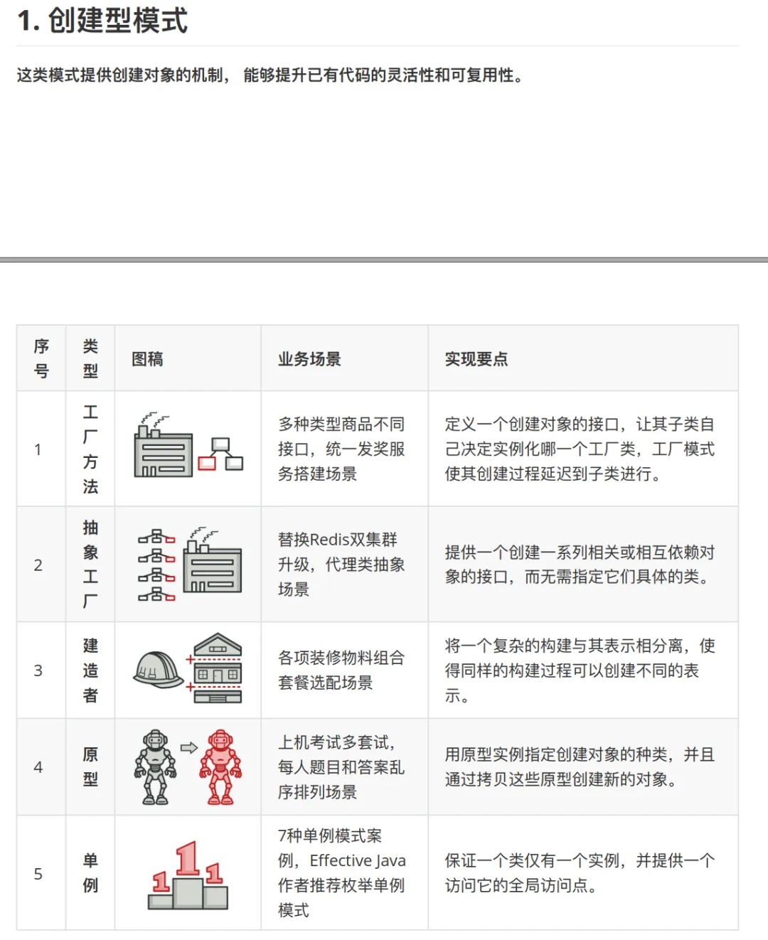 看了一下,这份学习笔记非常全面详细,基本覆盖了所有的设计模式,而且代码示例很全,配图也很用心,对于设计模式部分的学习应该非常有帮助。