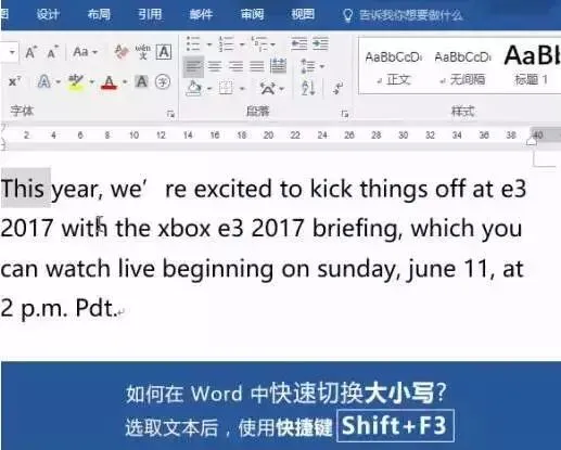 在Word中编辑英文时,如何快速切换大小写呢?试试组合键 Shift+F3吧,瞬间切换~
