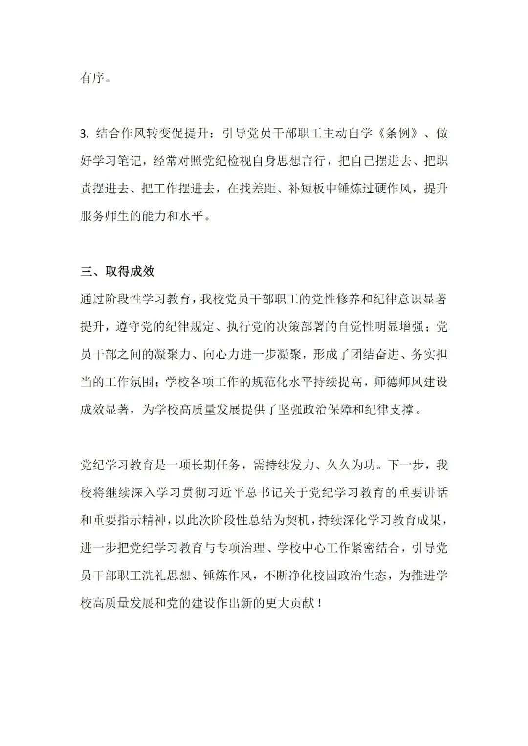 2025秋季党纪学习教育阶段性工作总结word版