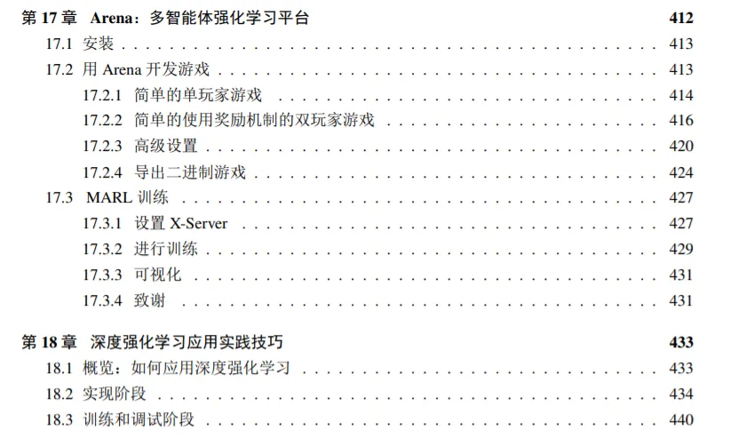 为了帮助读者更加深入地理解深度强化学习细节并把相关技术应用到实际中,第三部分仔细地讲述了大量应用的实现细节,例如机器人学习跑步、机械臂控制、下围棋、多智能体平台等等,并提供相关的开源代码。