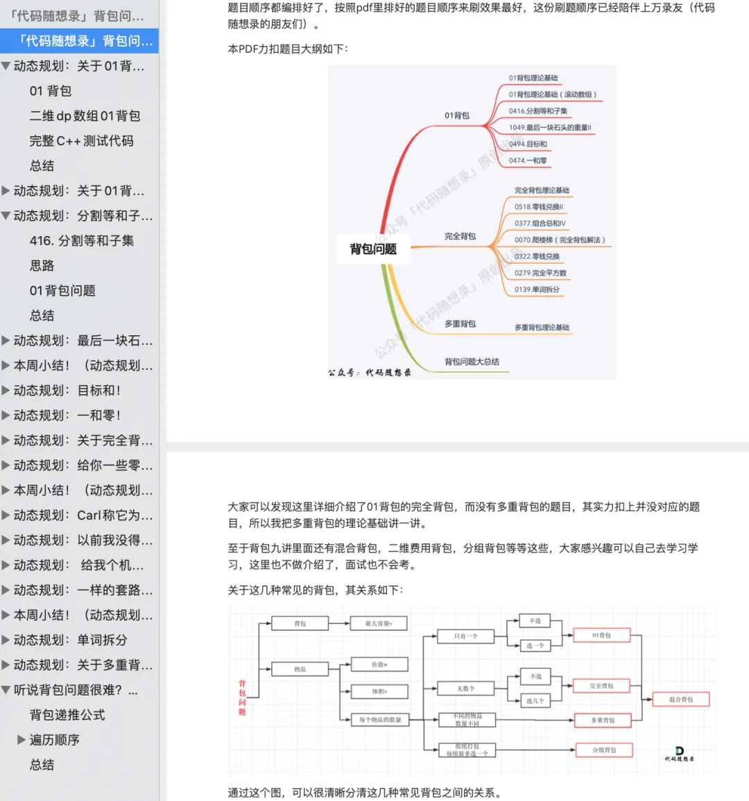 这本pdf是由公众号「代码随想录」背包专题的文章整理而来。