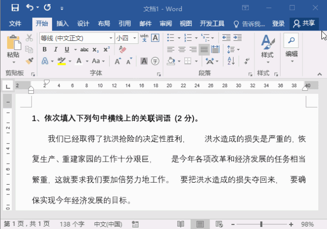 比如:填空题,你是不是在需要填写答案的地方,输入一条横线,像下图这样子的