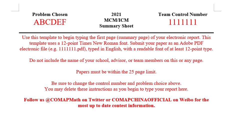 提前准备好模板是非常重要的,小编为大家带来了最新的2021美赛LaTeX模板。对于不会用LaTeX的同学也不要慌,小编也为大家准备了word模板~
