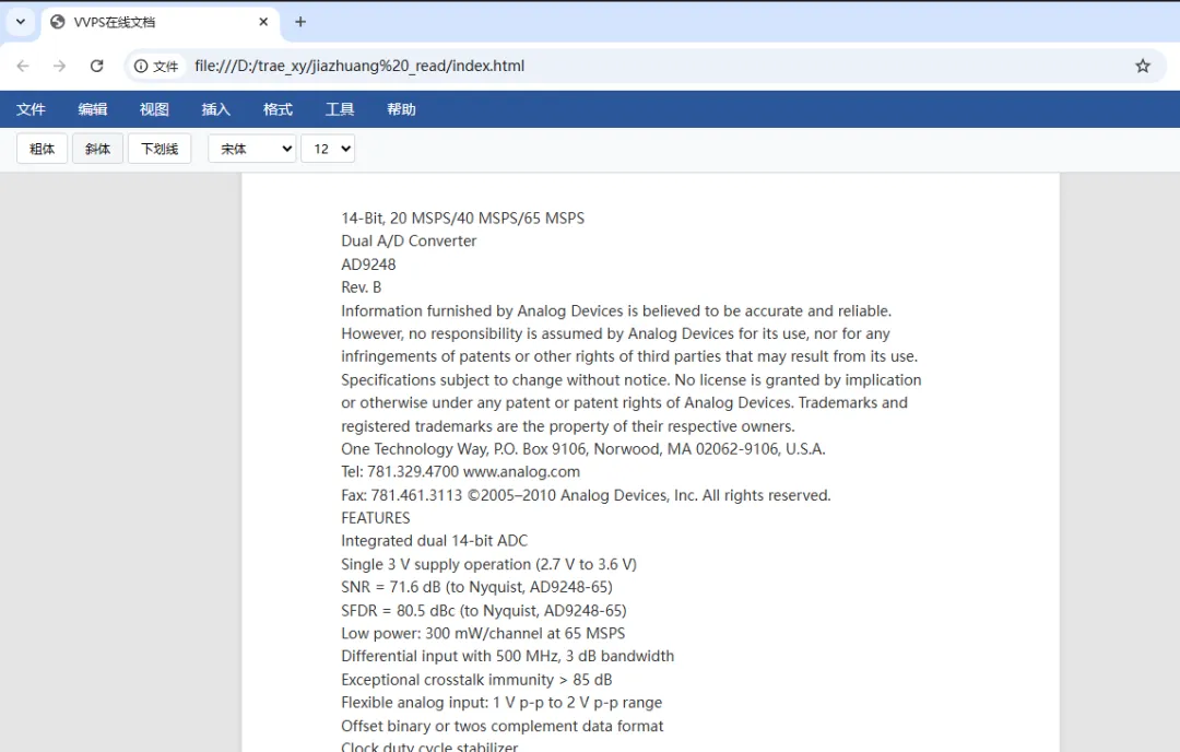 首先有一个外观形似word的界面,用户可以将自己工作文档粘贴到到这里,这样就就塑造出了认真工作的画面。为了让它看起来更真实,后期我还将这个工具改了一个山寨味十足的名字:VVPS在线文档。
