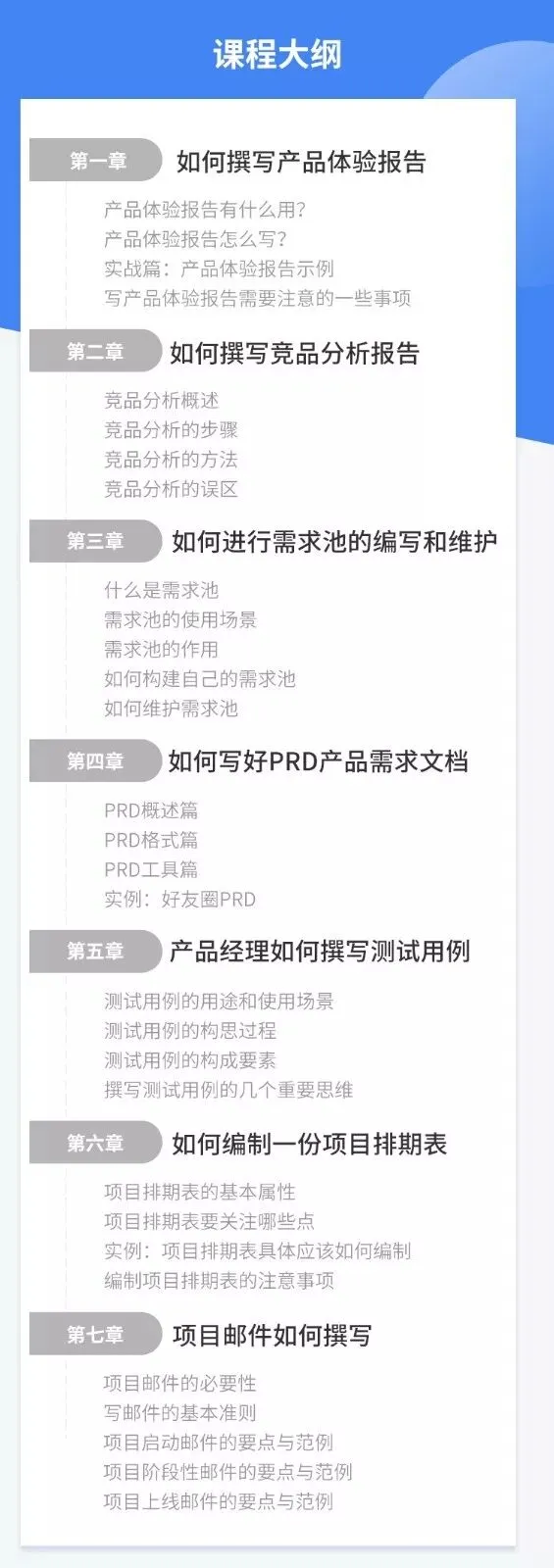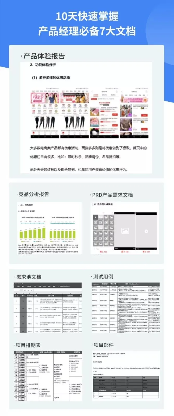 除了我们熟知的产品体验报告、竞品分析、PRD外,还教你需求池相关文档、项目排期表、项目邮件等产品经理常用、却少有相关学习资料的文档的撰写方法。