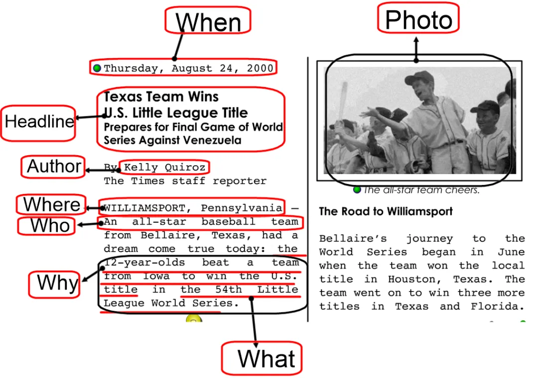 Newspaper articles give readers information about 5W1H