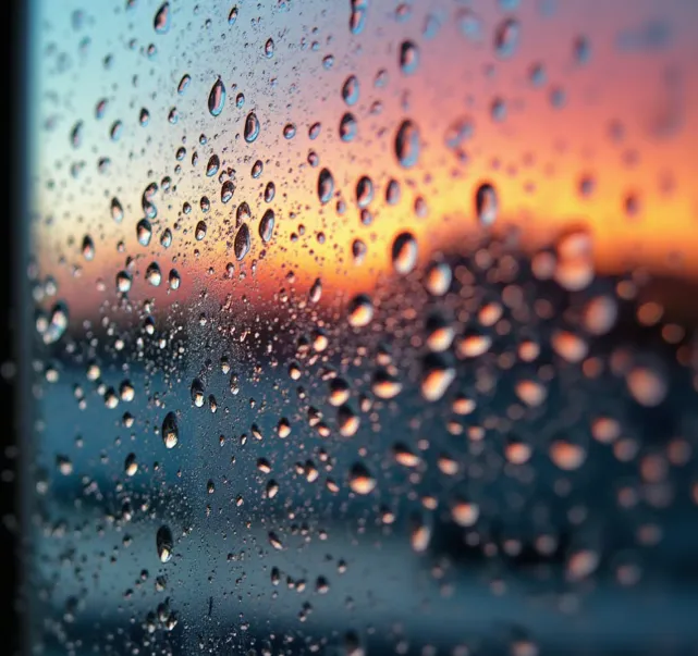 在玻璃上的水滴: