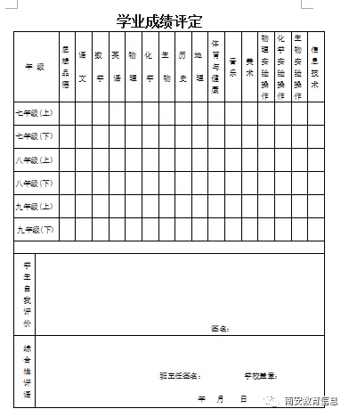 2. 初中毕业生综合素质与学业学习情况评定报告单