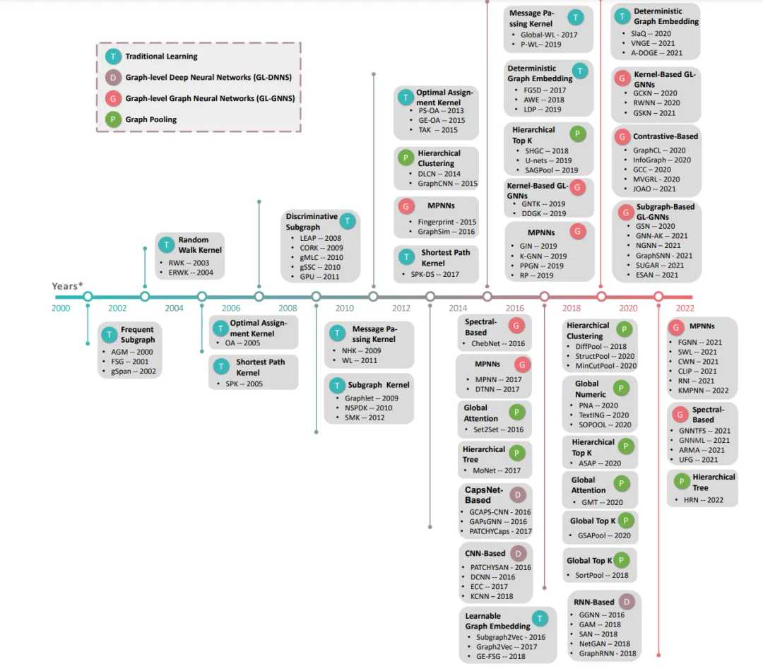 全面的分类法:本文提出了图级学习技术的全面分类法。具体来说,该分类涵盖了通过传统和深度学习方法进行的图级学习。