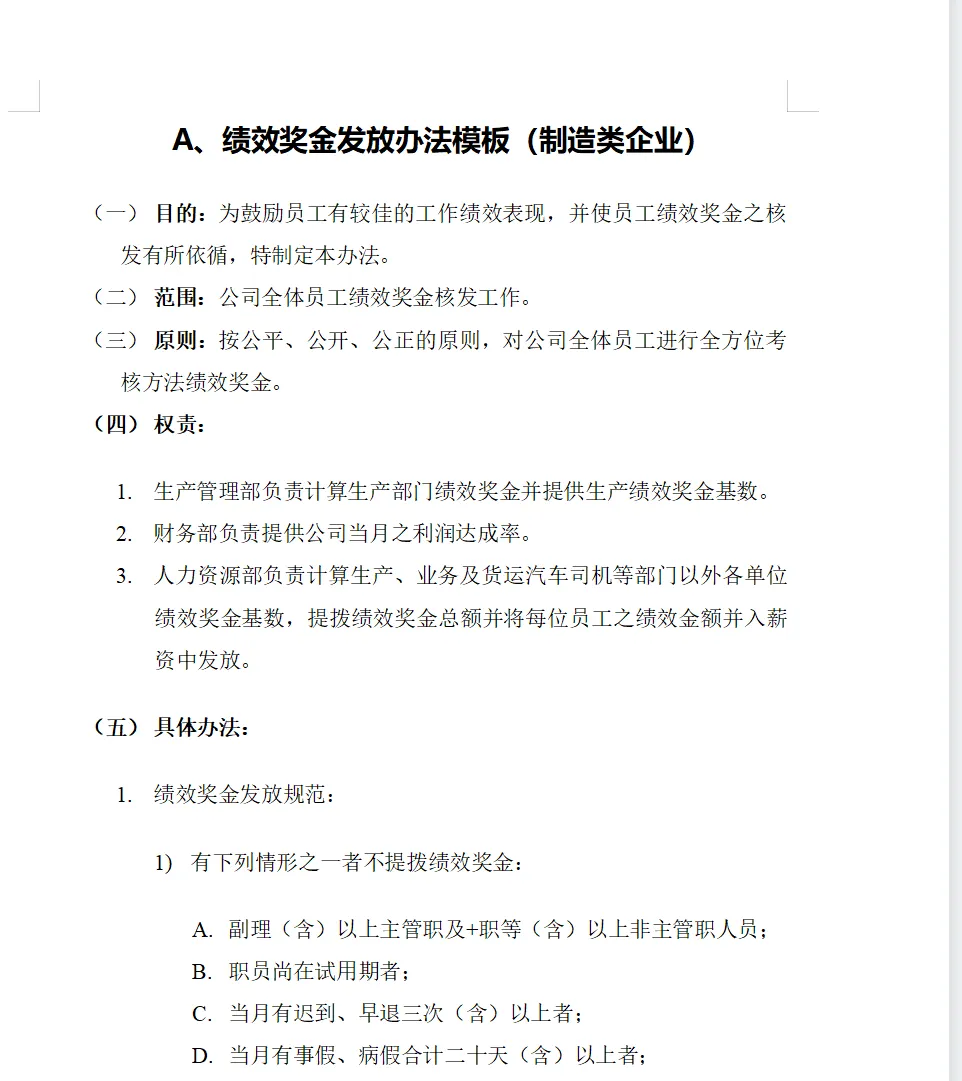 【薪酬福利】制造业绩效奖金制度