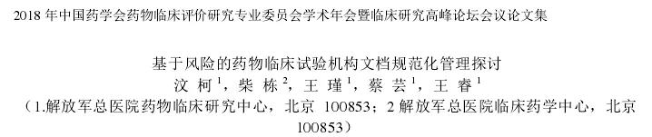 文章来源:2018 年中国药学会药物临床评价研究专业委员会学术年会暨临床研究高峰论坛会议论文集
