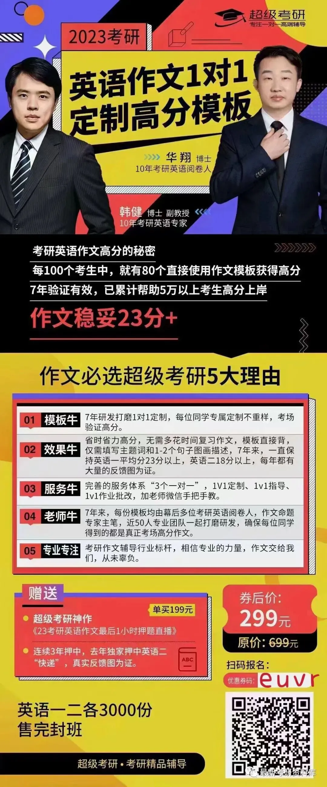 如果你基础差,又没时间整理属于自己的模板,推荐一对一模板定制,应该是全网唯一一家0查重的机构:省时高效拿高分,学习需要借力使力,才能快速拿到高分(效果看图),模板万能易套,句式高端新颖,配备一对一指导老师全部指导,一周内搞定作文,轻松斩获23分+,你想要作文高分,就赶紧下手吧,模板定制地址:www.chaojikaoyan.com 输入优惠券码:euvr 299元起,优惠券数量有限,速度领取,手慢无。
