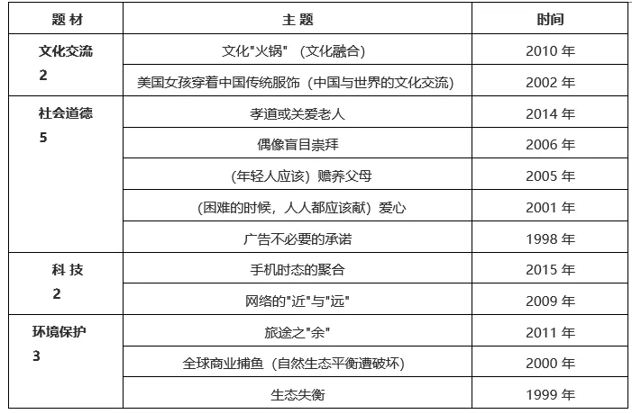 一、历年作文主题分类