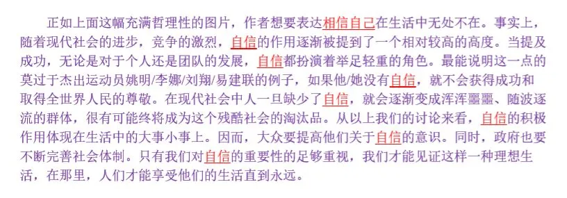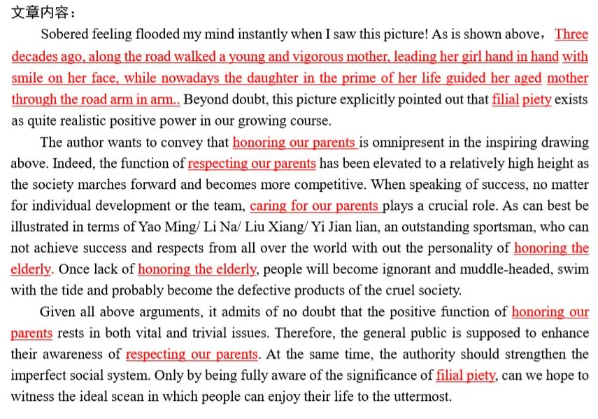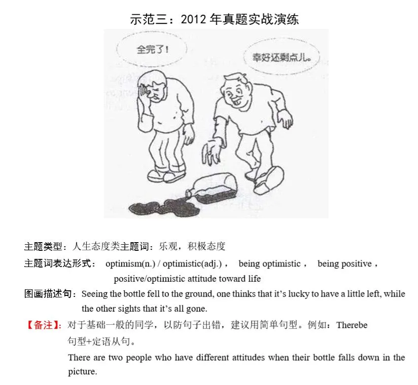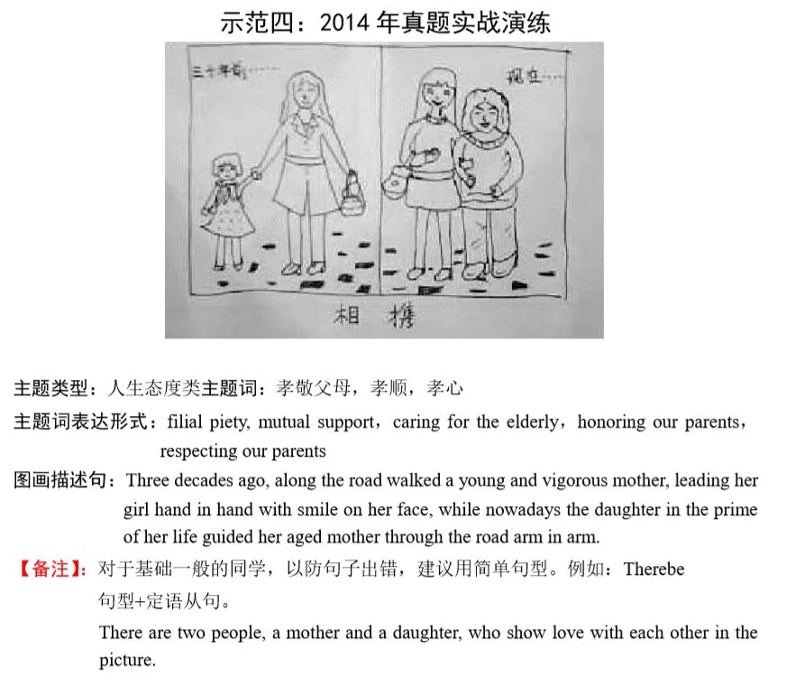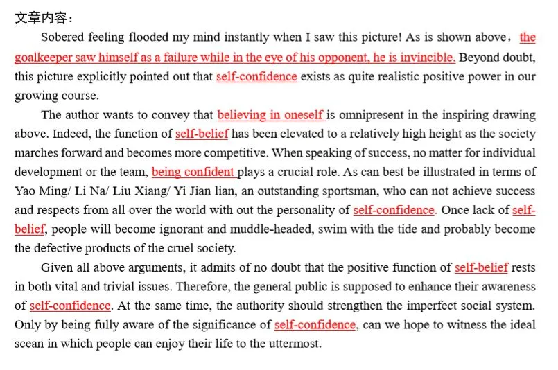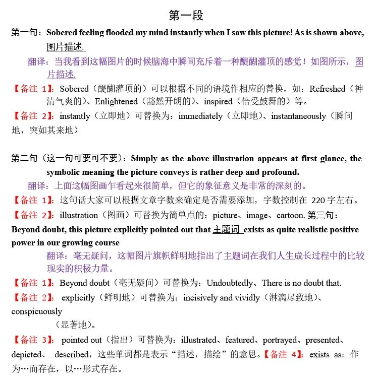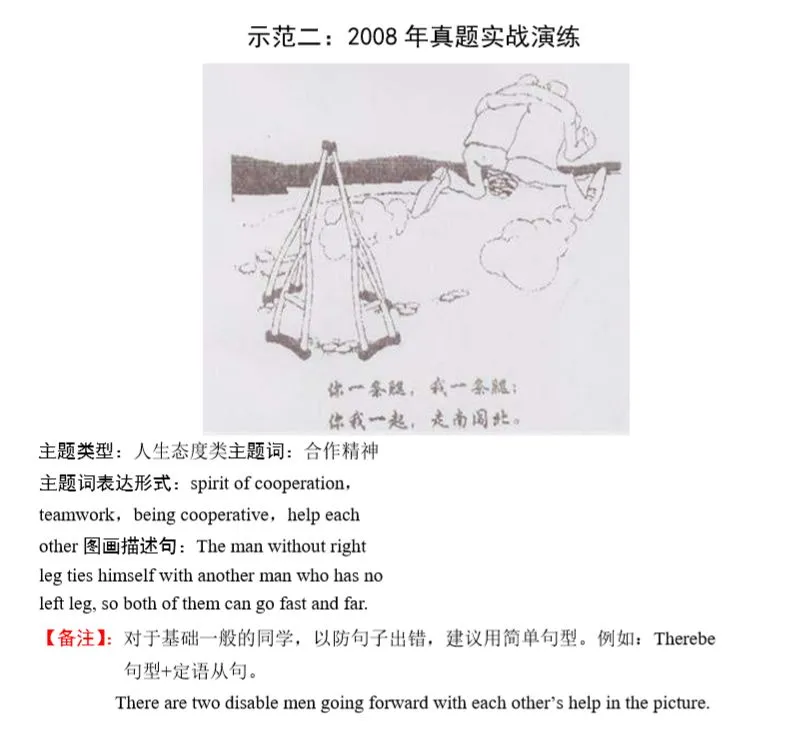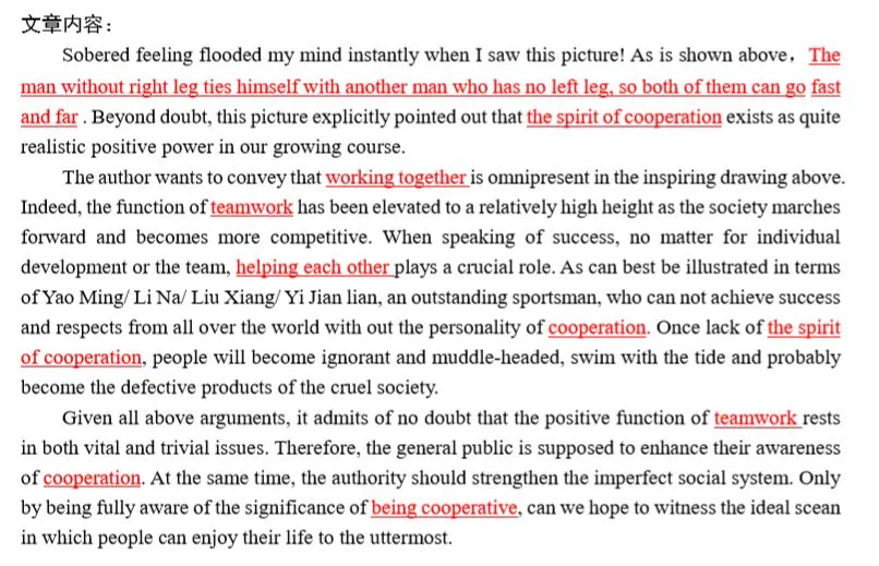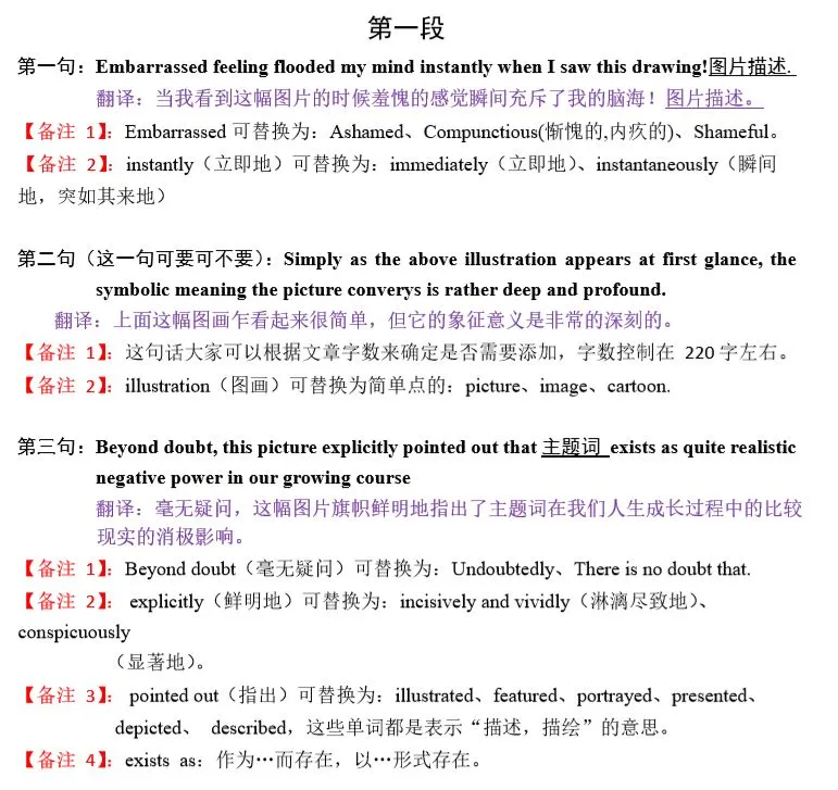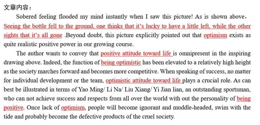 3,大作文开头必须描述图画,并揭示主题词,主题词要贯穿全文,反复出现,否则容易被视为偏题作文。