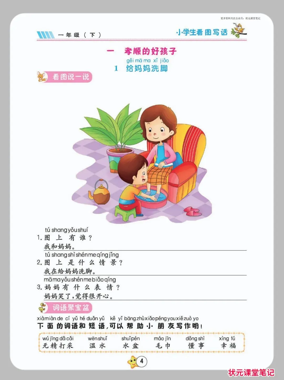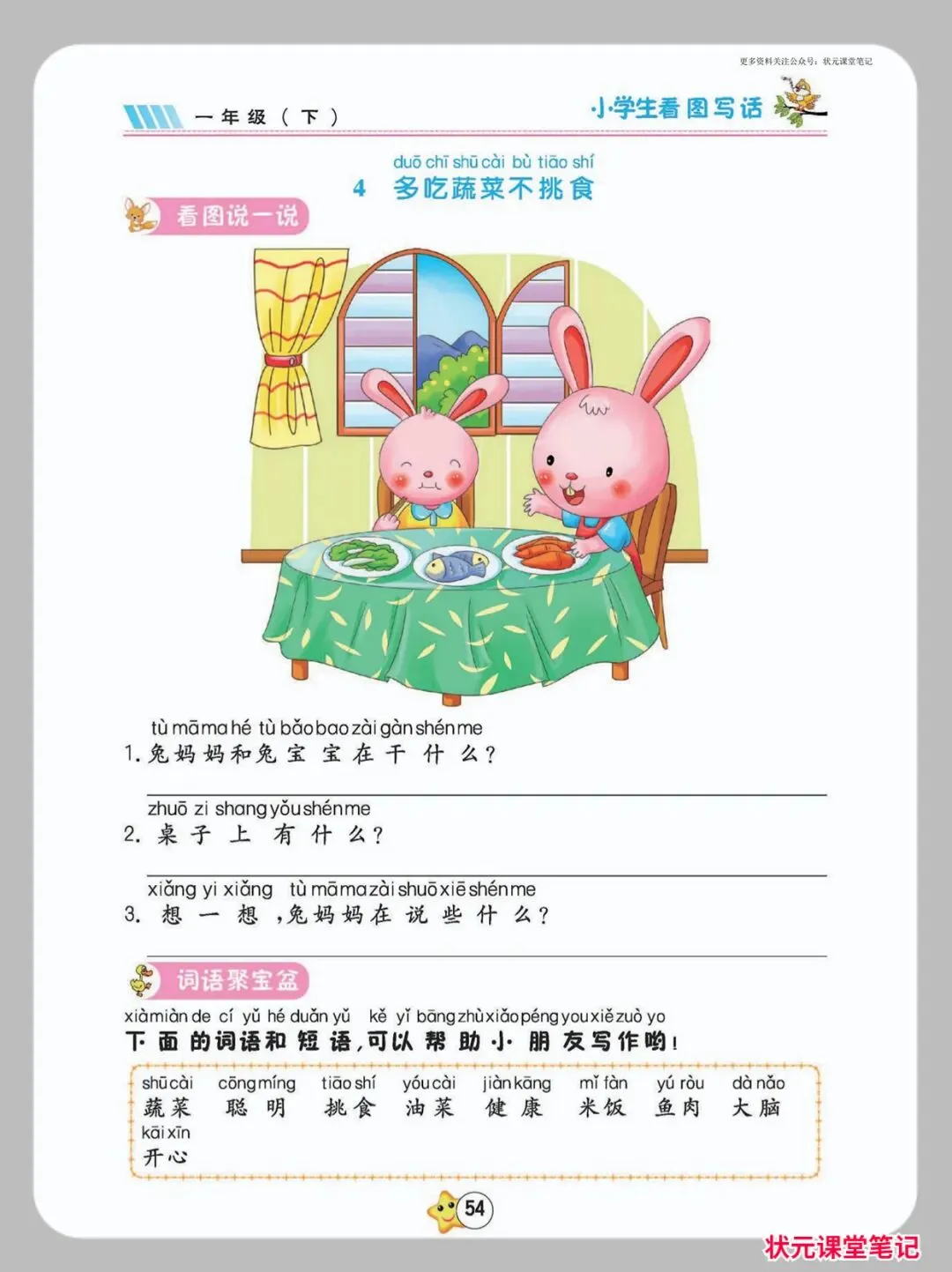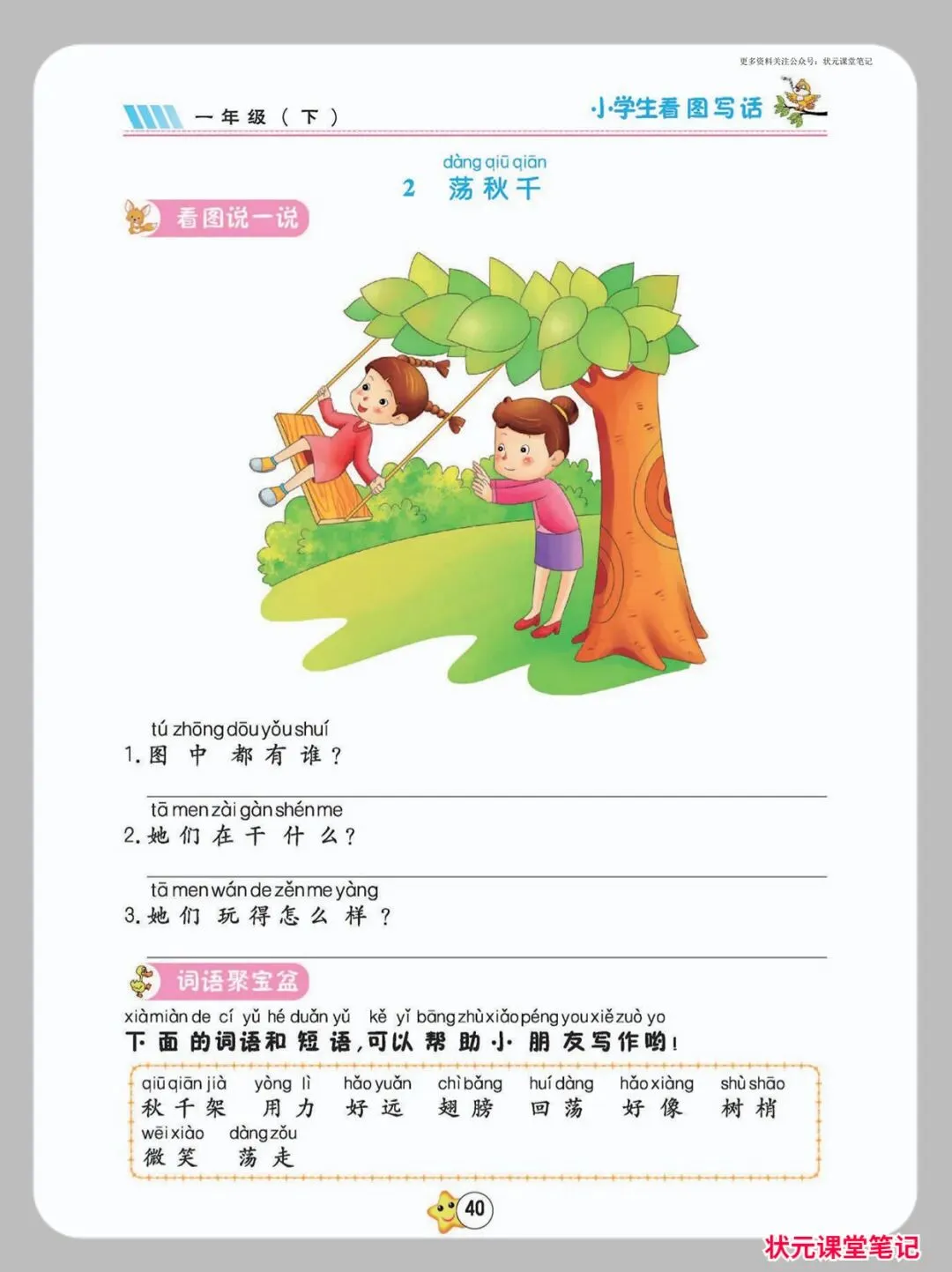 小学生一年级看图写话学习,PDF可打印!一年级就开始学习看图写话了,看图写话就是需要孩子多练习,多多练习会培养孩子写作的语感还有写作的技巧。获取pdf文档,关注公众号:状元课堂笔记回复:2022910自动获取文档链接