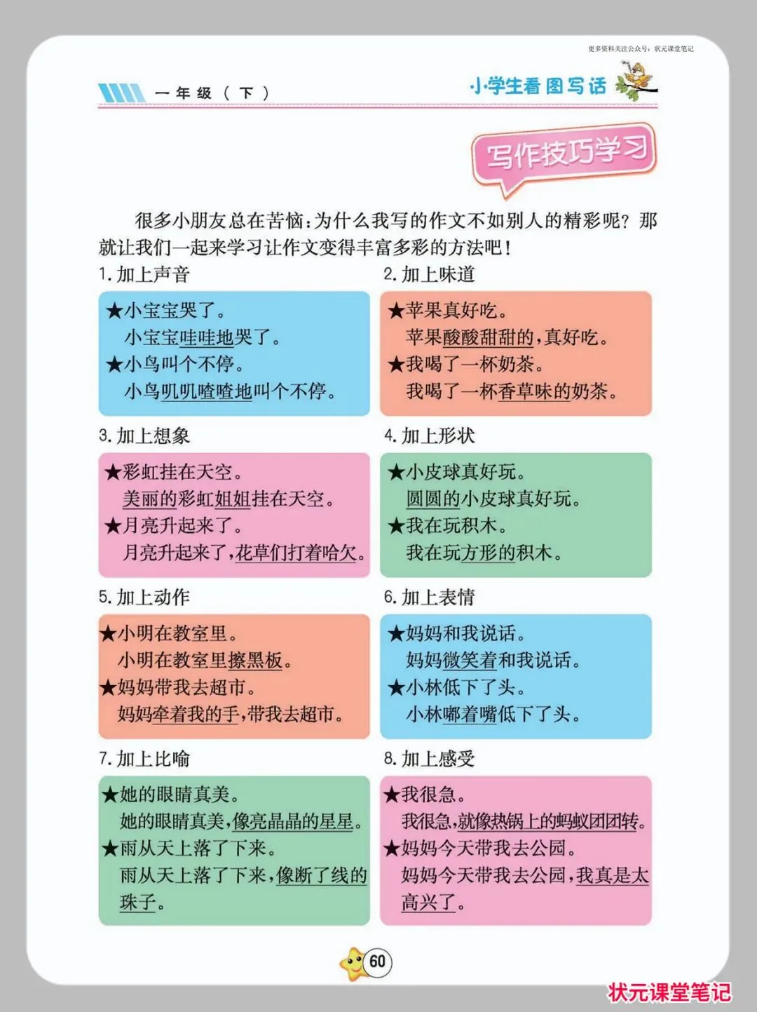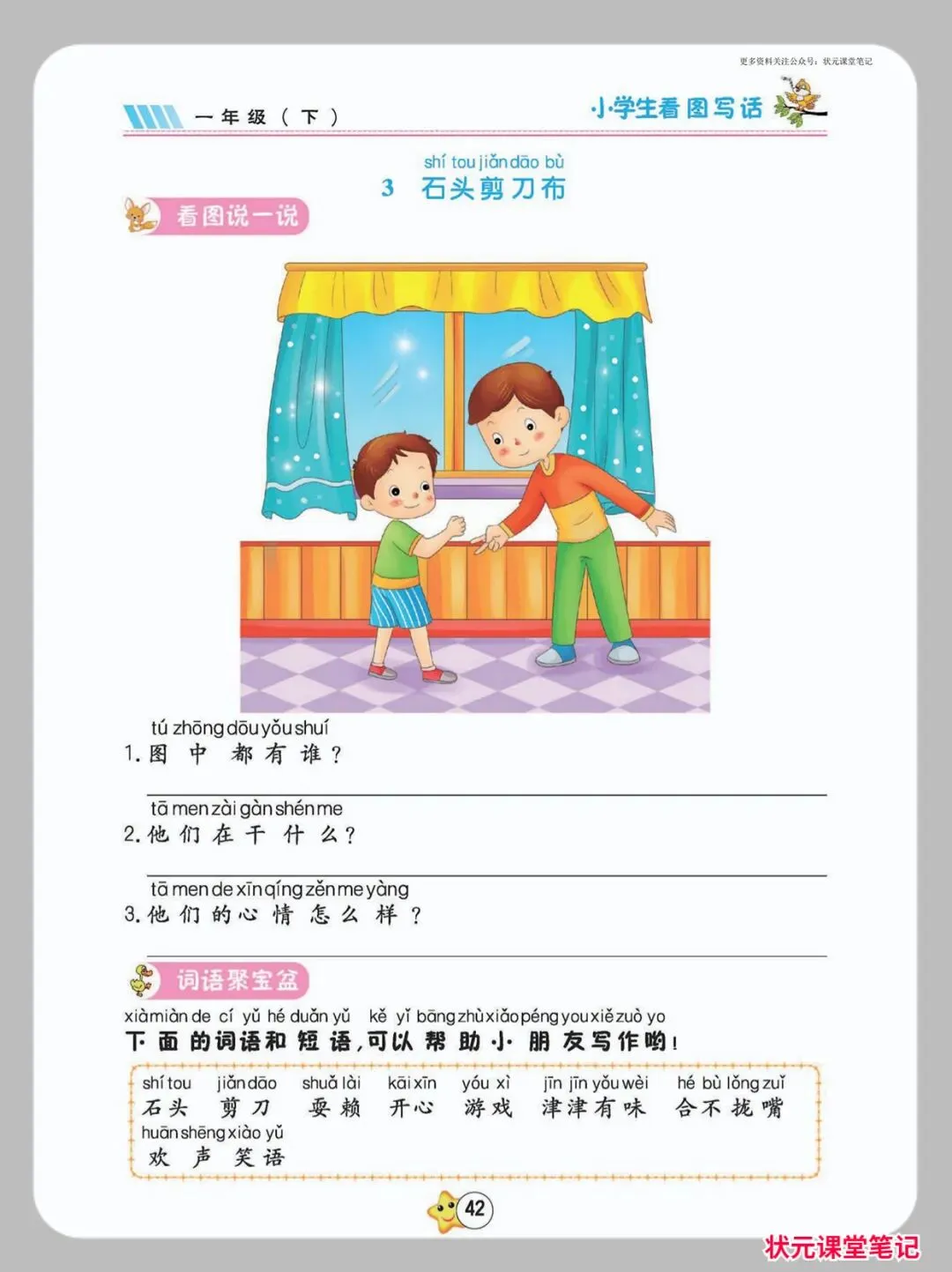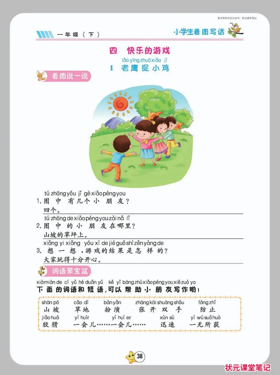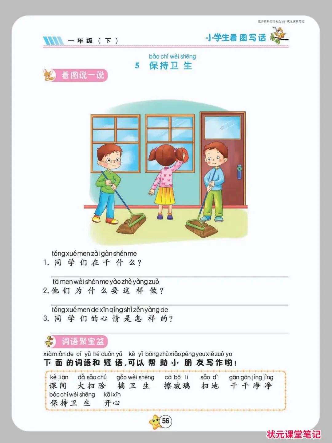 小学生一年级看图写话学习,PDF可打印!一年级就开始学习看图写话了,看图写话就是需要孩子多练习,多多练习会培养孩子写作的语感还有写作的技巧。获取pdf文档,关注公众号:状元课堂笔记回复:2022910自动获取文档链接