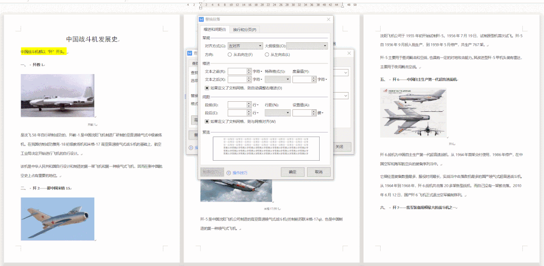 ③在【替换为】一栏中,单击【格式】→【段落】→【对齐方式】,选中【居中对齐】