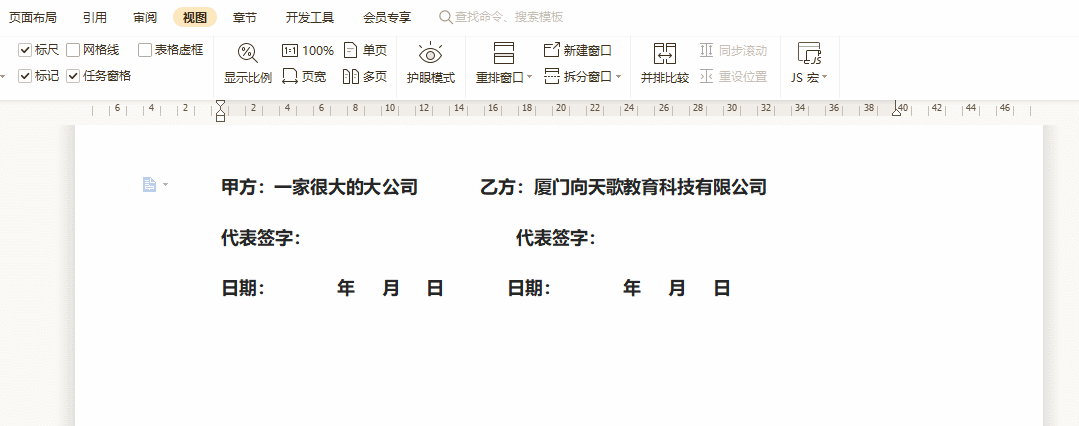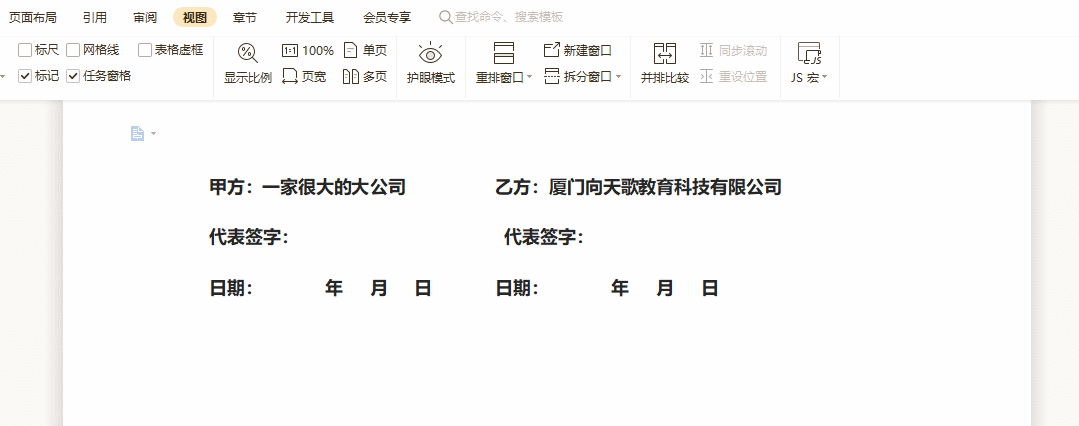 合同文档中甲乙双方的信息,通常要两栏对齐,用敲空格的方式可以暂且对齐