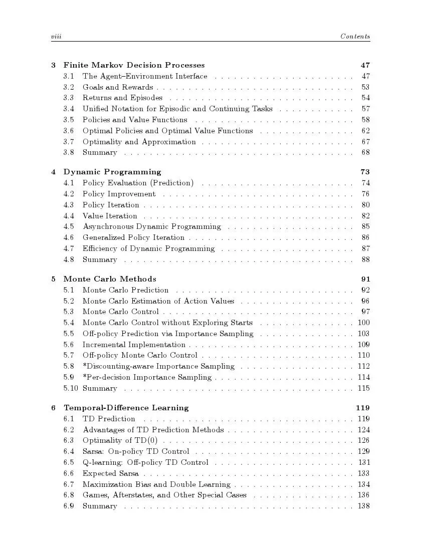 本书分为三个部分。第一部分根据马尔可夫决策过程定义强化学习问题。第二部分提供了基本的解决方案:动态规划,蒙特卡罗方法和时差学习。第三部分提出了解决方法的统一视图,并结合了人工神经网络,资格跟踪和规划;最后两章介绍了案例研究,并考虑了强化学习的未来。