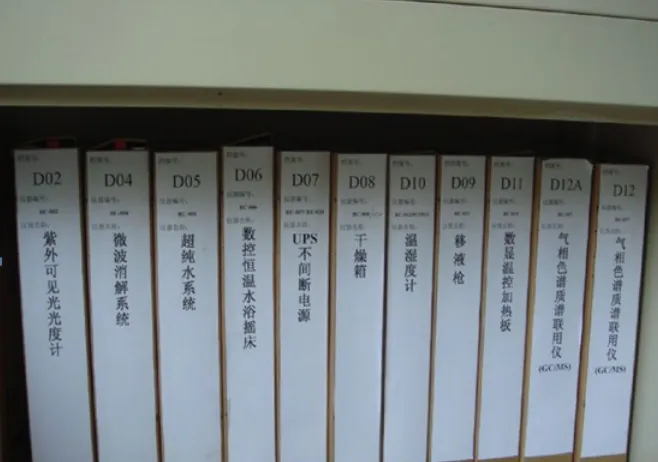 每台设备由设备员做一个档案盒,按设备编号对其进行编号,并确保档案盒中有以下内容:设备档案卡、采购申请、验收记录、合格证、使用说明书、历年的检定证书、使用记录、定期维护记录、维修记录、期间核查记录、停用报废记录。(每台设备做一个档案盒)