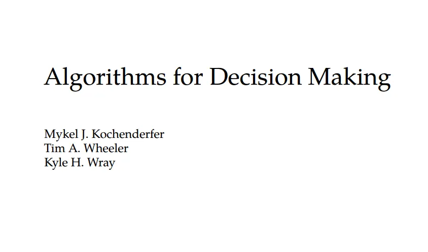 本书广泛介绍了不确定条件下最优决策的算法。涵盖了与决策相关的各种主题,介绍了基本的数学问题公式和解决它们的算法。提供图形、例子和练习来介绍各种方法背后的几本原理。本书是为高级本科生和研究生以及专业人士准备的。这本书需要一些数学知识,并假设之前接触过多变量微积分、线性代数和概率概念。附录中提供了一些审查材料。