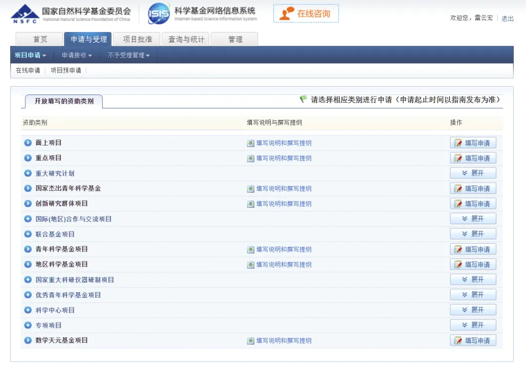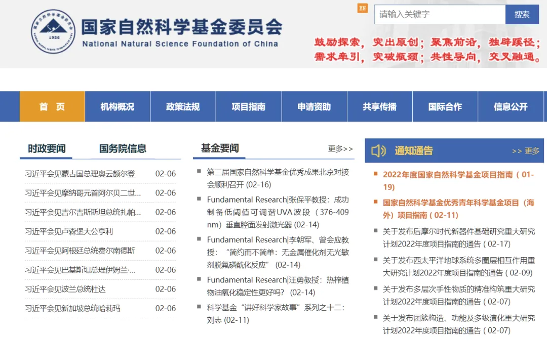 进入国家自然科学基金官网申请入口>>