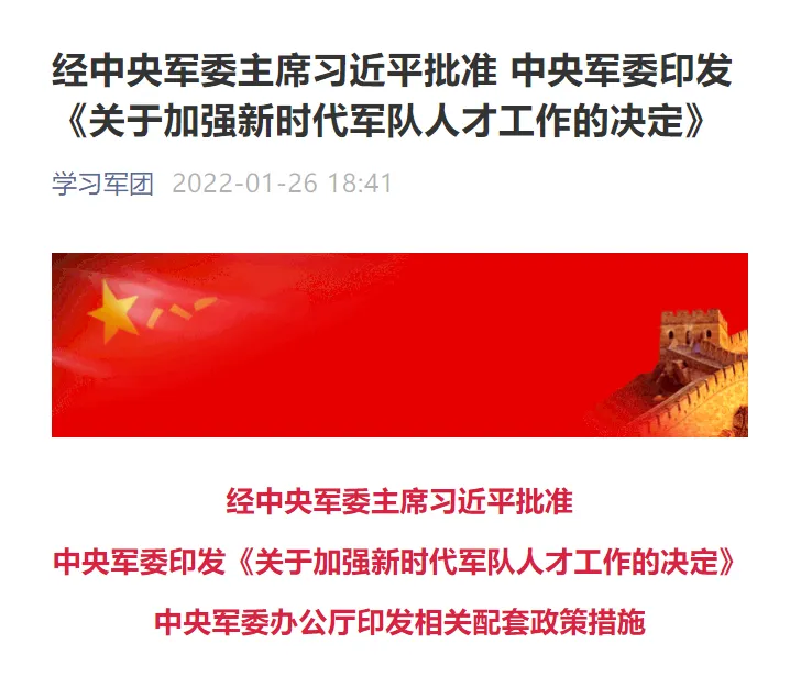 《关于加强新时代军队人才工作的决定》及相关配套政策措施,正式印发!