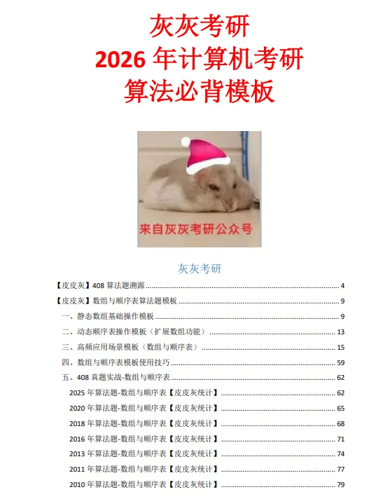 【PDF下载】考研算法必背模板来啦!建议打印!皮皮灰统计的录取信息:#【25考研】652所计算机考研数据#25考研全校拟录取分析#历年录取数据【26考研】灰灰考研刷题库皮皮灰为大家带来了《考研算法必背模板》包含顺序表、栈、队列、字符串、树、图、查找、排序等计算机考研常考算法没有任何套路,直接下载!2026版本全部更新重写后台回复【算法】直接下载!【PDF下载】2026年408模拟基础四套卷【皮皮灰择校资讯持续更新】