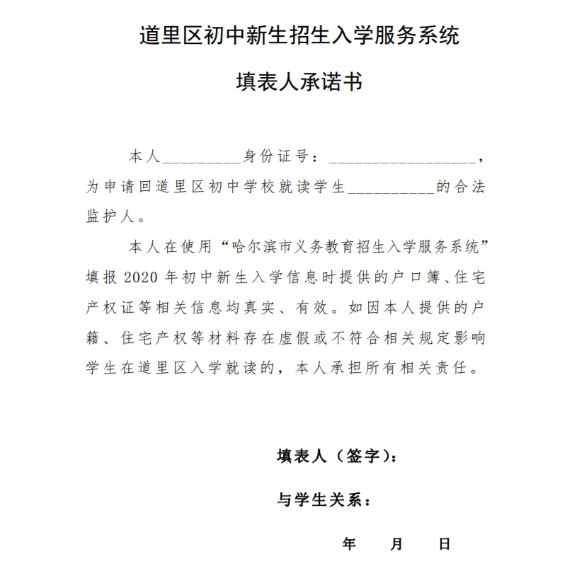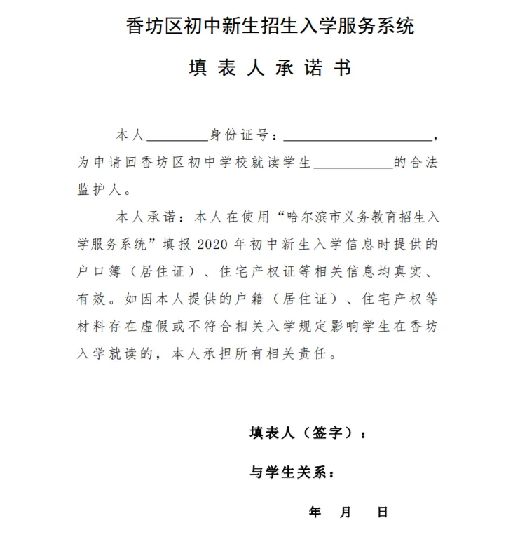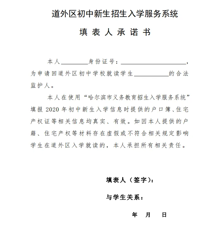 公办小学、民办小学、民族小学、外地返乡小学毕业生, 要求回户籍所在区、县(市)公办初中就读的,应分别向毕业公办小学、毕业民办小学、毕业民族小学、户籍所在区、县(市) 教育局提出申请,由学校或教育局告知审核证件、网上申请、统筹安排等事项,家长在“哈尔滨市义务教育招生入学服务系统”填报回户籍所在区、县(市)就读初中申请,经审核符合条件的,由户籍所在区、县(市)教育局统筹安排进入公办初中学校就读。