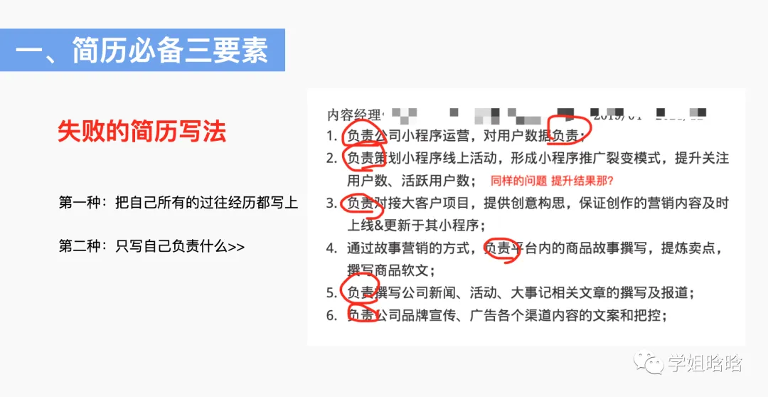 今年一年,招聘市场还是有不小变化的,导致企业挑人条件更严苛了。随着我辅导人数的增加我看到了更多简历问题。这些问题的原因,可能你并不知道,所以你找个人给你修改简历,你只能拿到结果,你换个岗位自己写,还是出问题。我希望能授之以渔,虽然我是靠这个赚钱的哈哈哈哈。