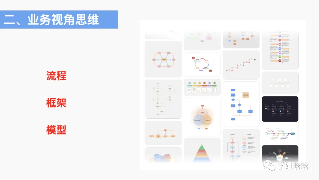 常见的还有生态思维,可视化思维等等。在这儿时间关系,我就不一一介绍了。把这些思维放到你简历和面试当中。