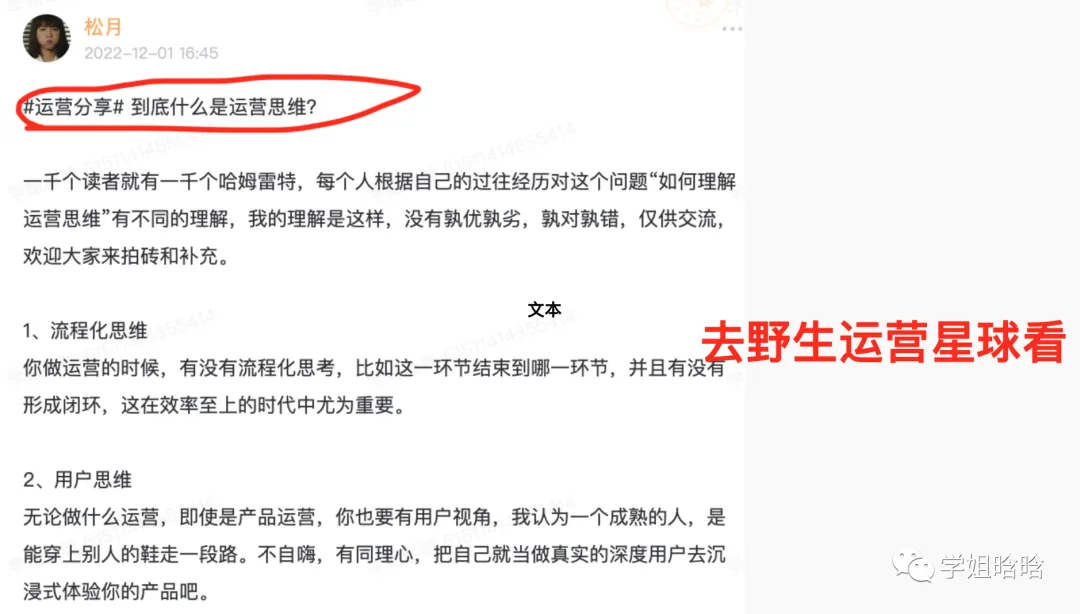 松月也经常去总结一些工作当中的思维放在咱们野生运营星球里,大家真的可以仔细的去研究一下,不管是用在简历还是面试上,都非常棒。希望大家可以把星球利用得彻底!
