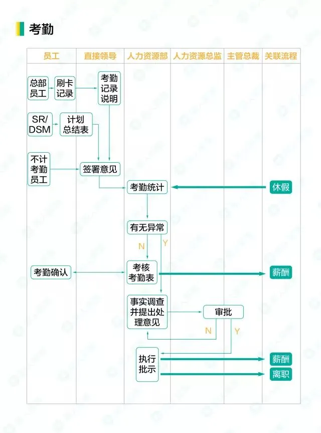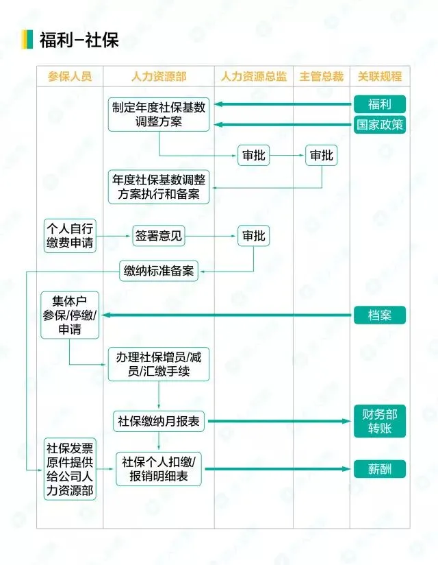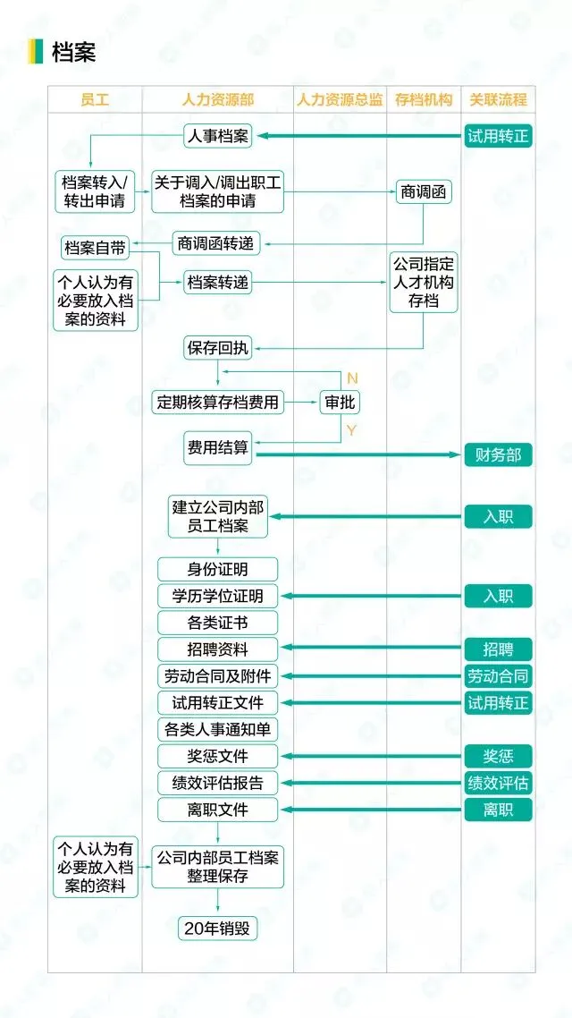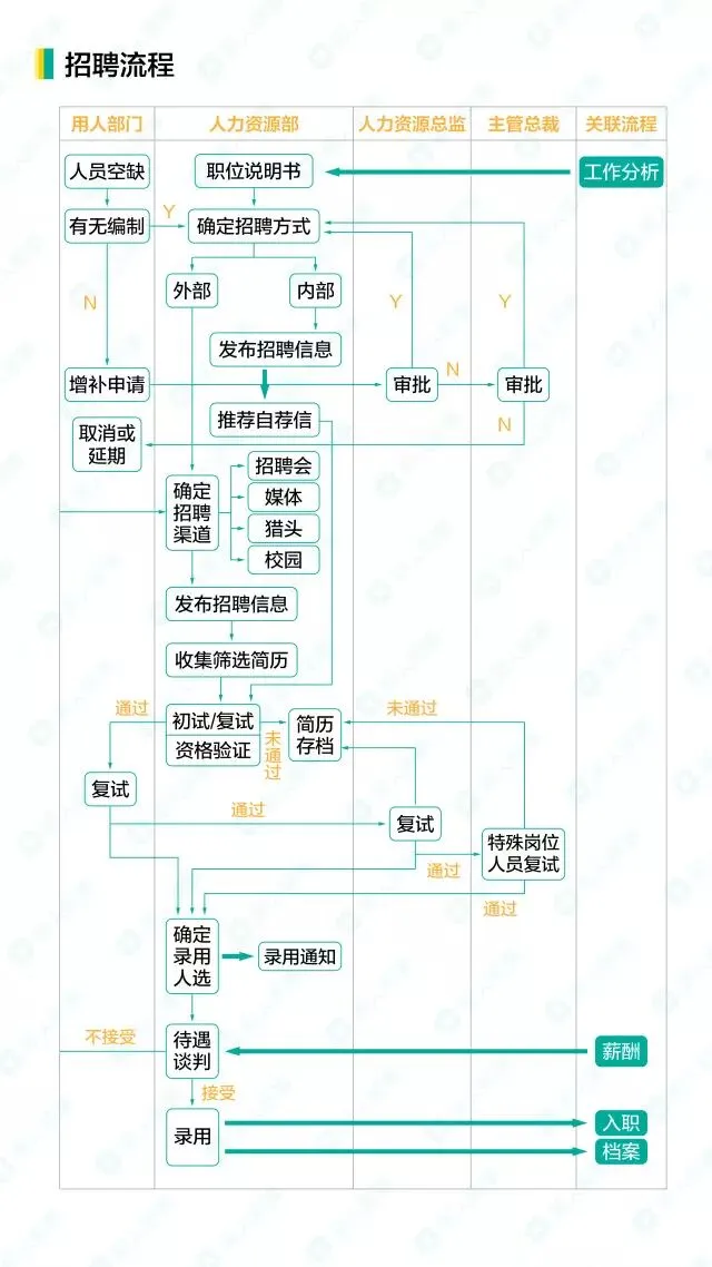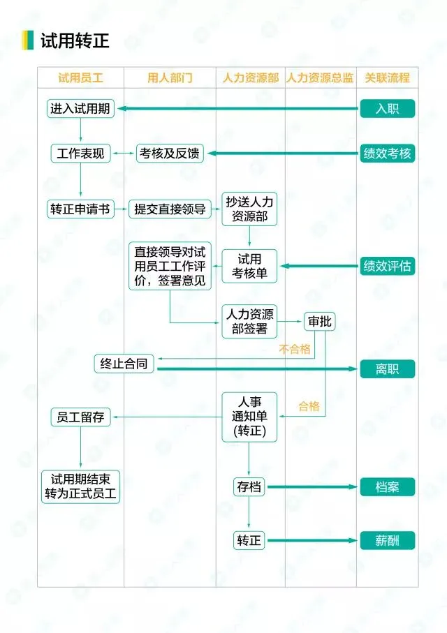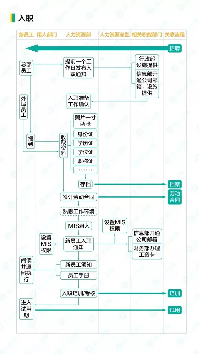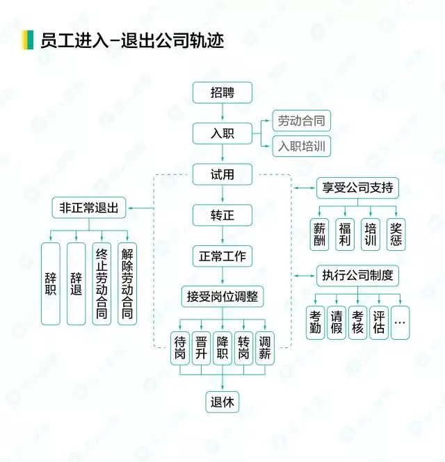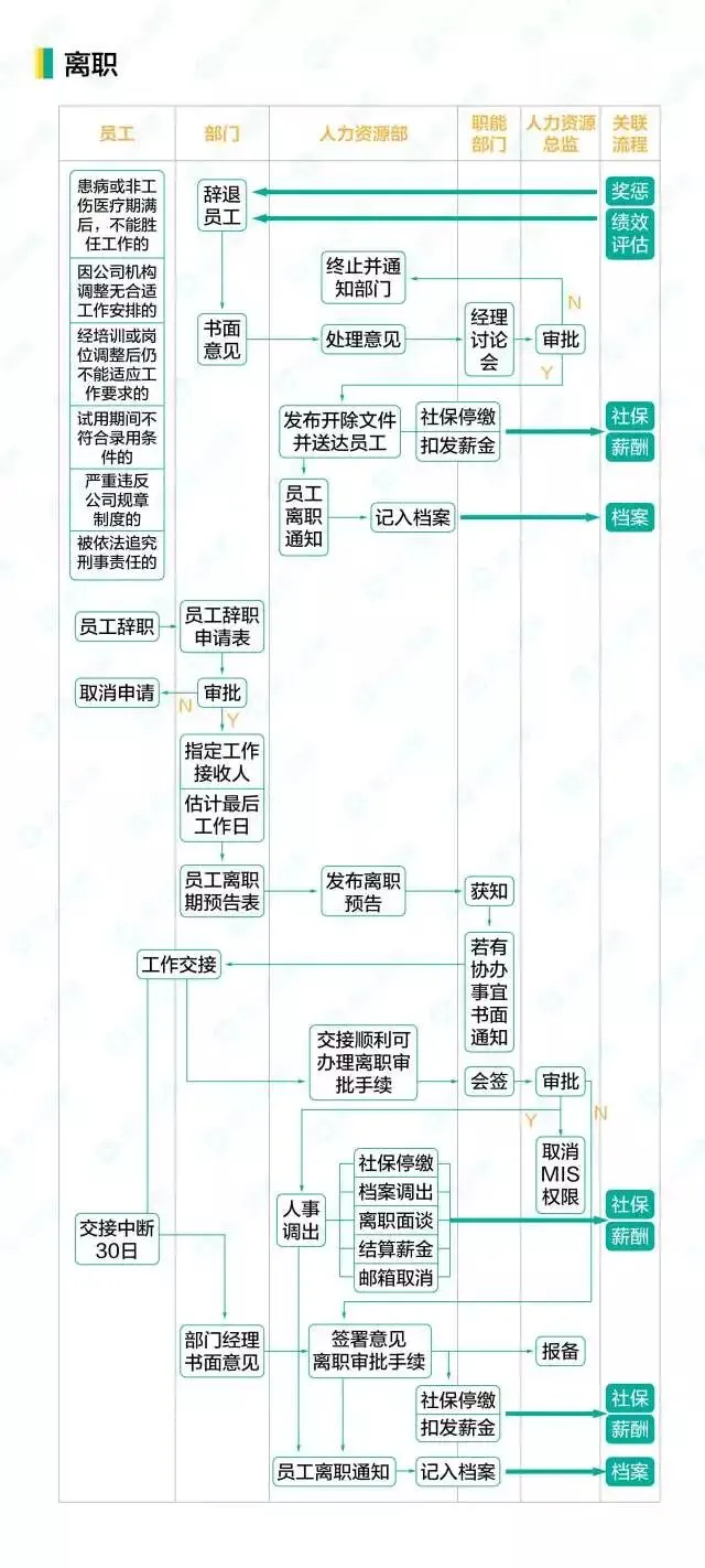 文末有福利,可以直接下载流程图高清版本。另外,流程图中提到的HR必备文档,如劳动合同模版、绩效考核表等,小薪也都打包好,放在文末啦!
