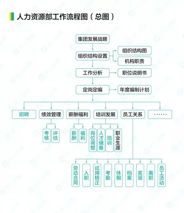但HR有时候在树立全局观方面有所欠缺,这个时候,大家就需要这份“人力资源工作流程图”来帮助你更好地熟悉工作哦~