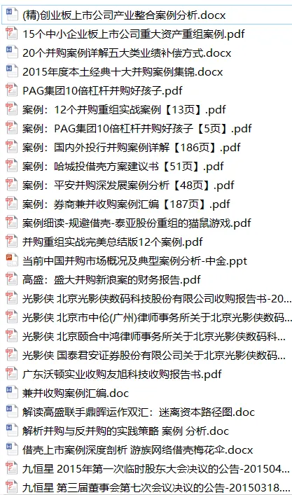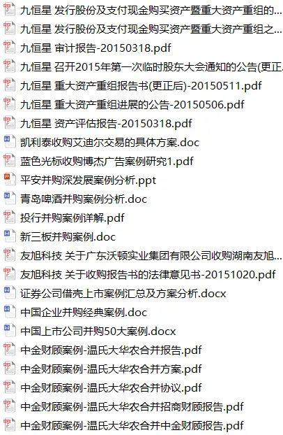 132份企业并购重组模板、培训、案例、电子书等资料