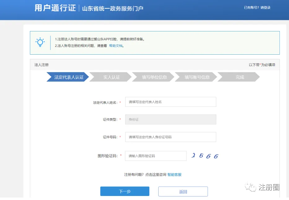 2.4 没有账号的点击省政务服务网注册,由法人进行注册账号,注册流程如下: