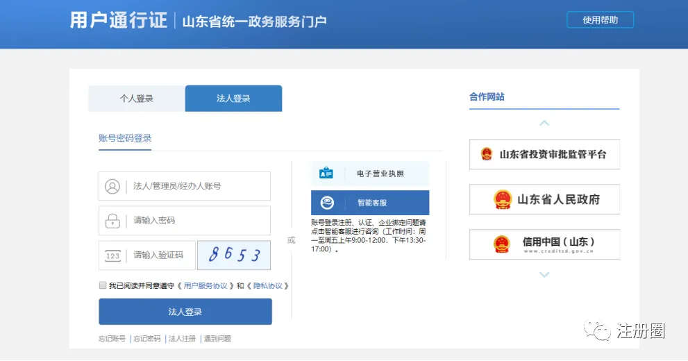 2.5 已有账号的点击省政务服务网登录,需要注意的是此处应选择法人登录,登录界面如下: