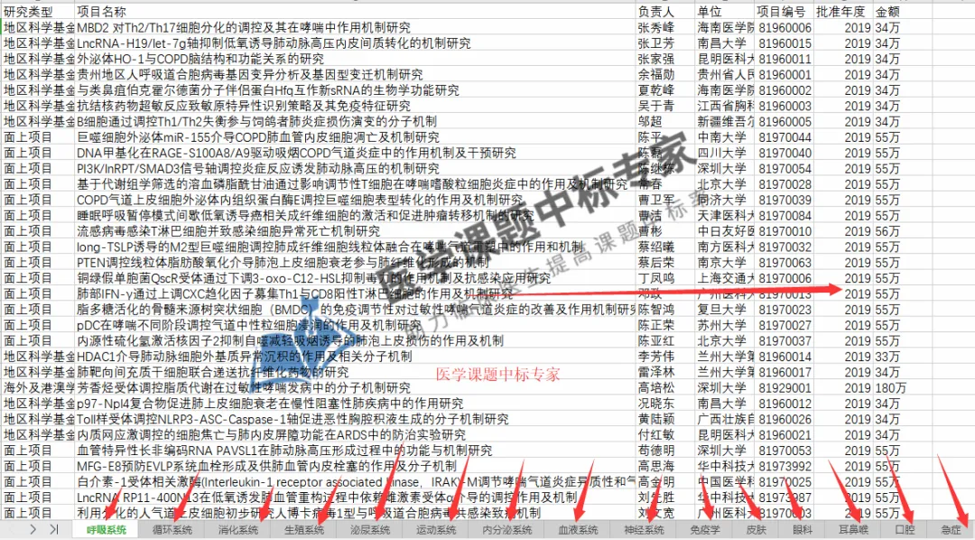 这是我们的硕博团队历时7天7夜呕心沥血整理出来的2019年中标的标书目录,18大类,一共9242份目录,涵盖医学科学处十个处几乎所有方向。