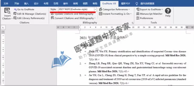 历年NSFC均没有提供立项依据中参考文献的标准格式,经验告诉我们,一般情况参考文献的格式只要全文统一,即可(此处特指立项依据中的参考文献)。因此,这里我们整理了一个Endnote的style,供大家参考使用,便于节省整理时间!