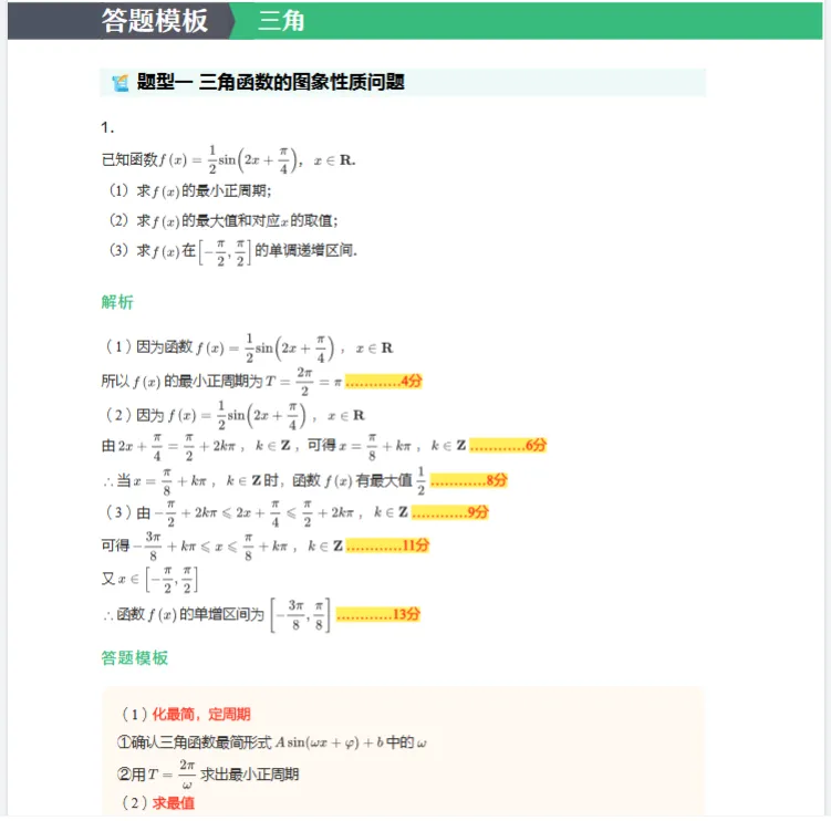 高考数学必备答题模板