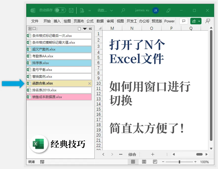 是你打开了N个Excel文件,之后切换文件需要在WIN的任务栏去选择打开表格,很繁琐.